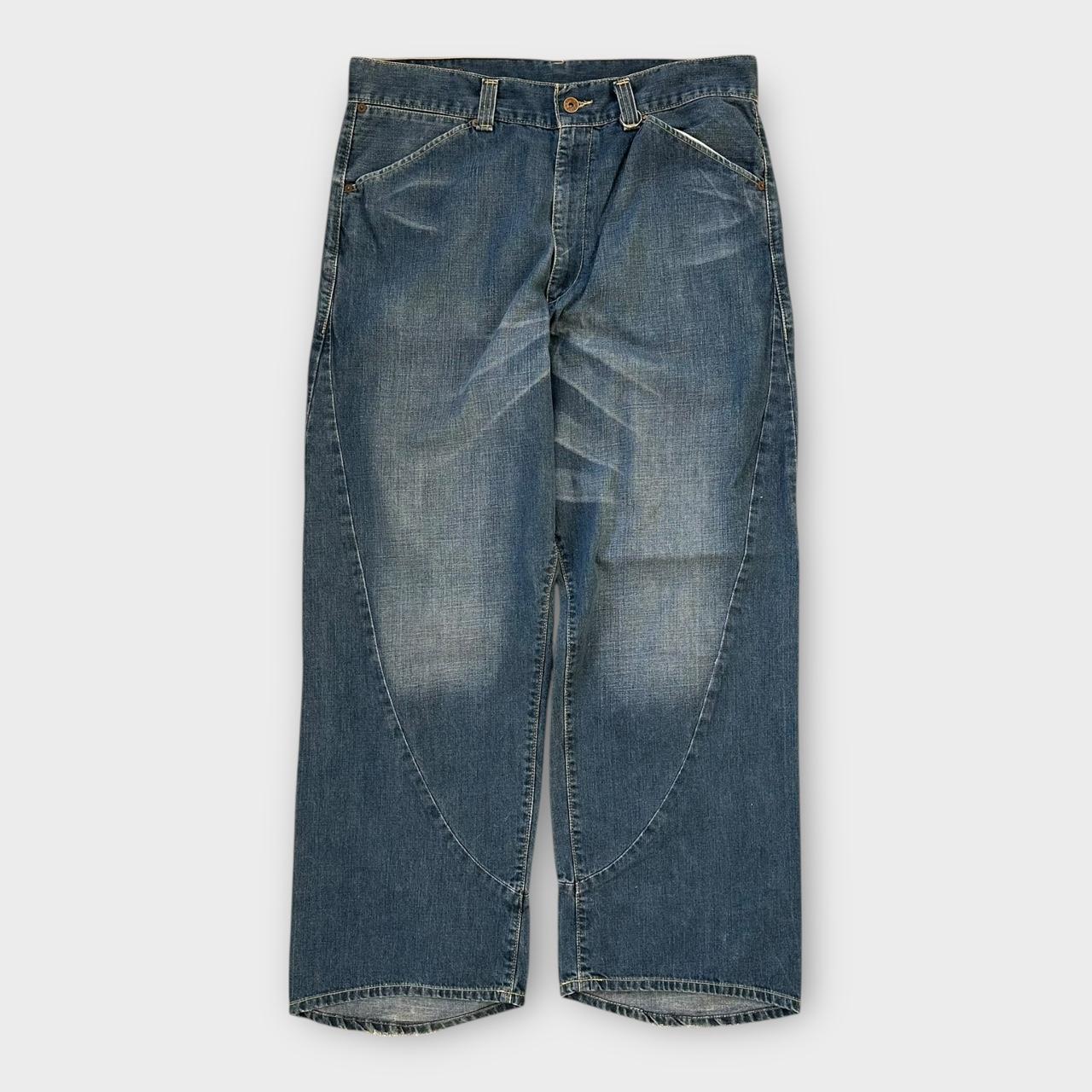 Jean baggy Levi's en denim bleu torsadé Y2K du début des années 2000 VRAIE COULEUR MONTRÉE SUR LA PREMIÈRE PHOTO