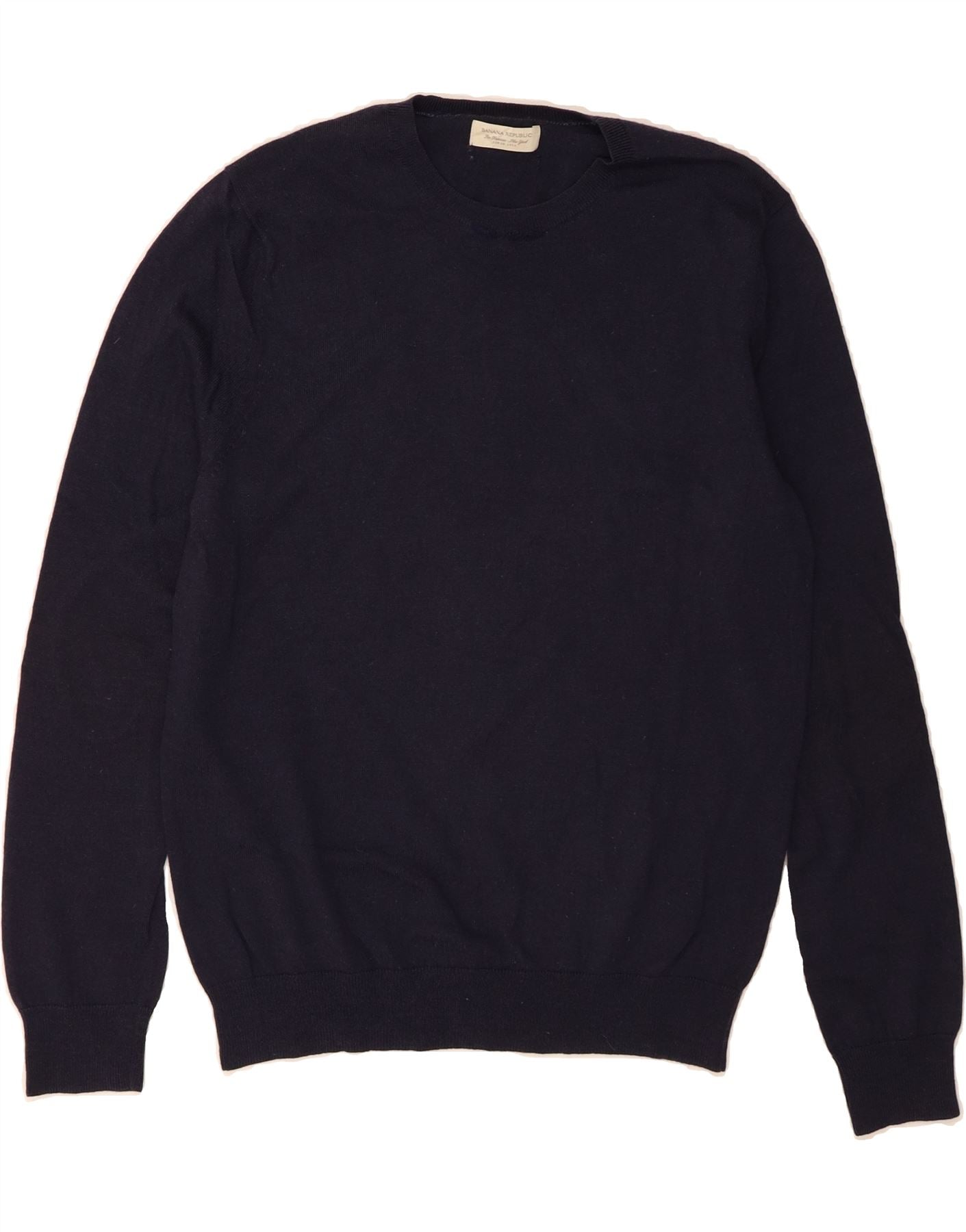 BANANA REPUBLIC Mens Crew Neck Jumper Sweater Medium Navy Blue Merino Wool