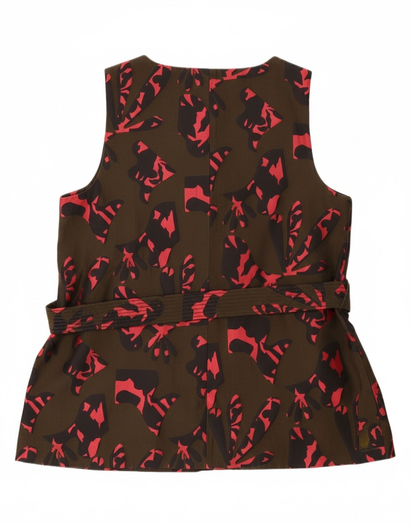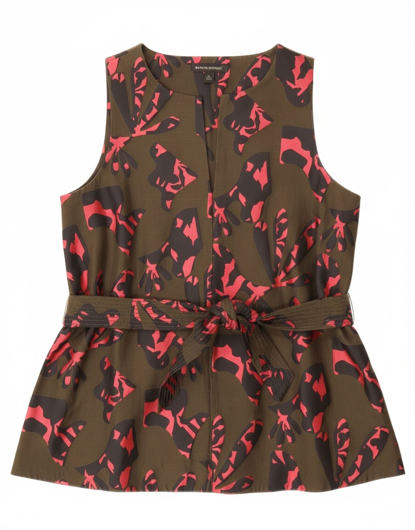 - Description de l'IA : Ce haut chemisier Banana Republic pour femme est fabriqué à partir d'un mélange lisse de polyester et de coton. L'imprimé camouflage kaki offre un motif abstrait moderne. Un décolleté en V et une coupe sans manches créent une silhouette épurée. Le design du pull présente une taille réglable pour un ajustement ceinturé personnalisé, fixé par un nœud chic. Ce haut de coupe régulière offre un style contemporain.