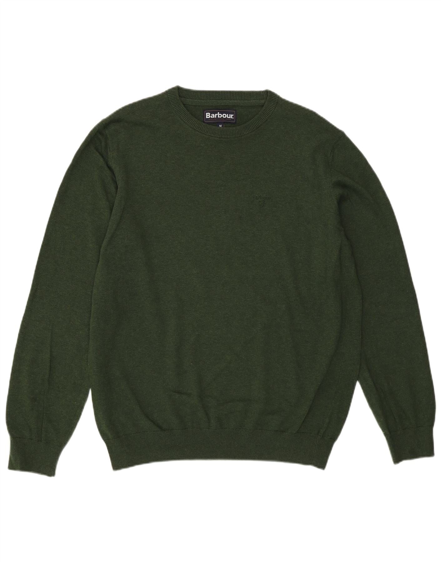 - Description de l'IA : Ce pull à col rond pour hommes Barbour est confectionné à partir d'un tissu tricoté léger dans une riche teinte verte. Il présente un col rond classique et des manches longues. La coupe régulière assure un port confortable. Les manches et l'ourlet à revers offrent une finition soignée. Un subtil logo brodé ajoute une touche signature.