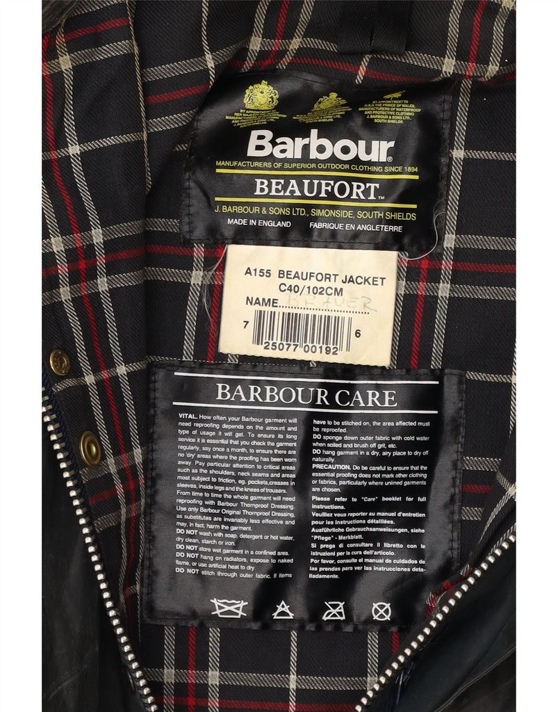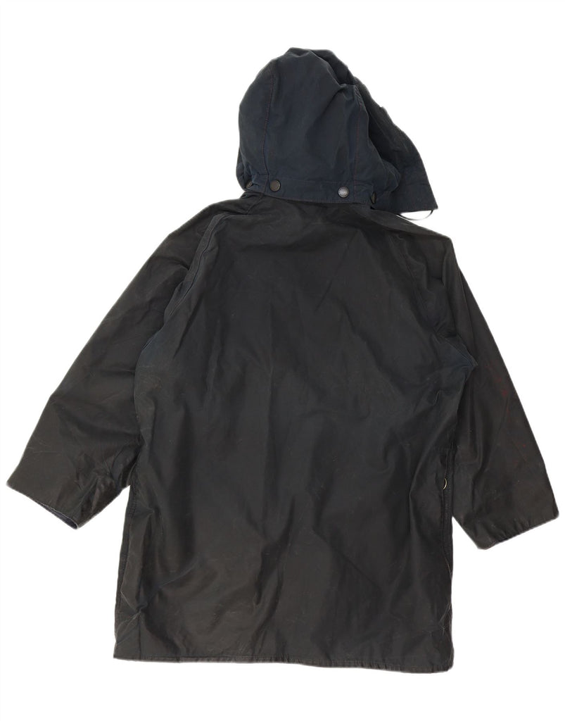 BARBOUR Mens Hooded Waxed Cotton Jacket Size 40 Medium Navy Blue