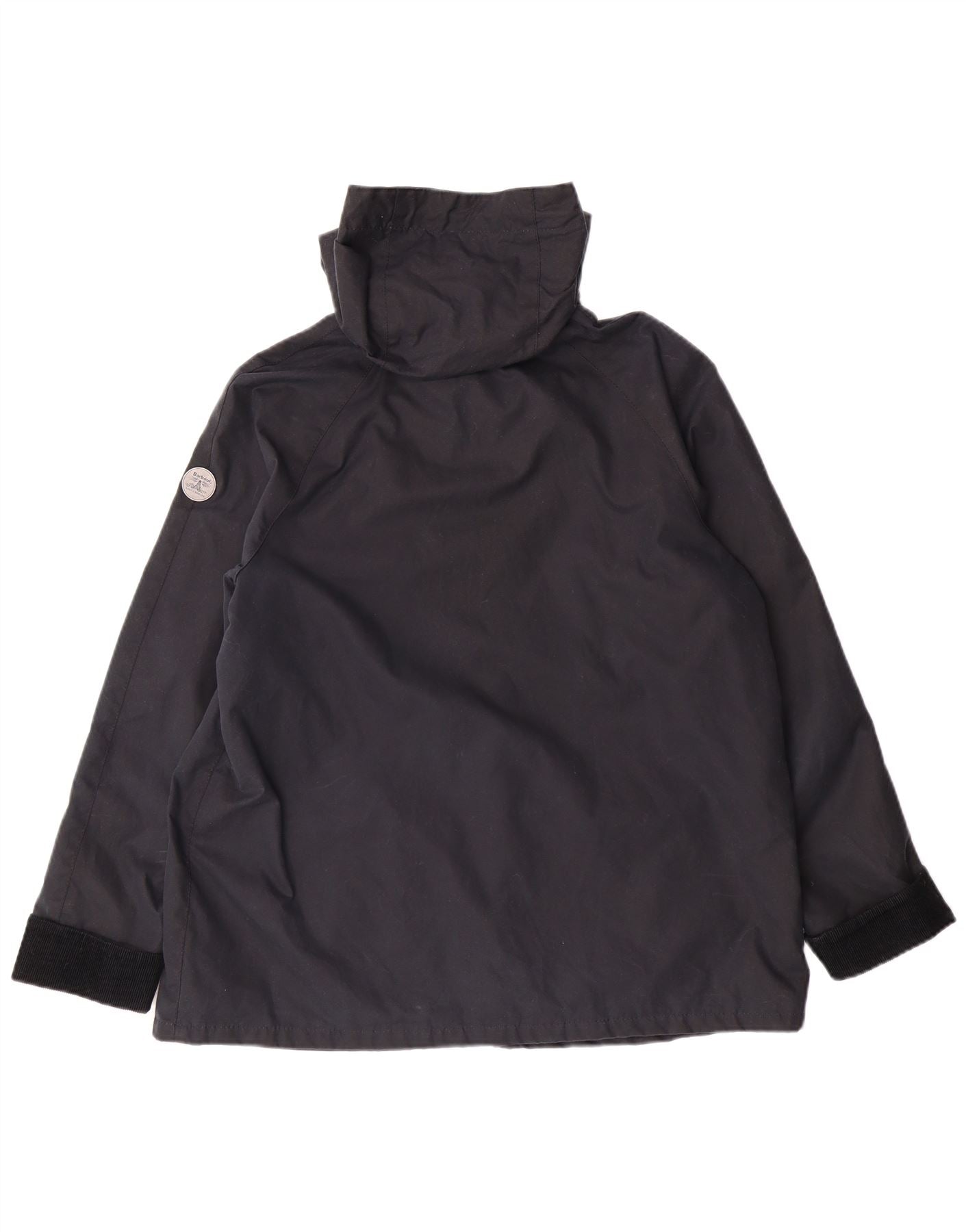 BARBOUR Womens Hooded Waxed Cotton Jacket UK 12 Medium Navy Blue Cotton