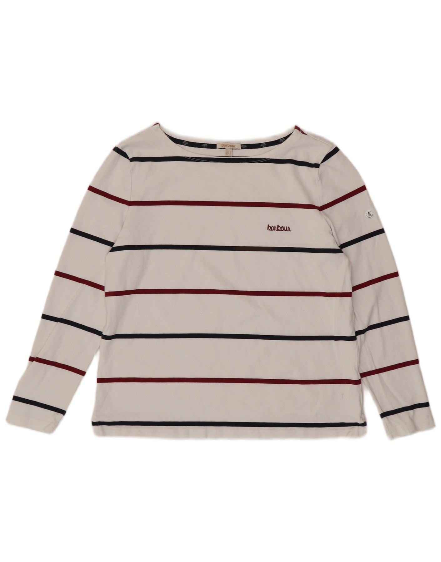 BARBOUR Haut Femme Manches Longues UK 16 Grand Coton Rayé Blanc
