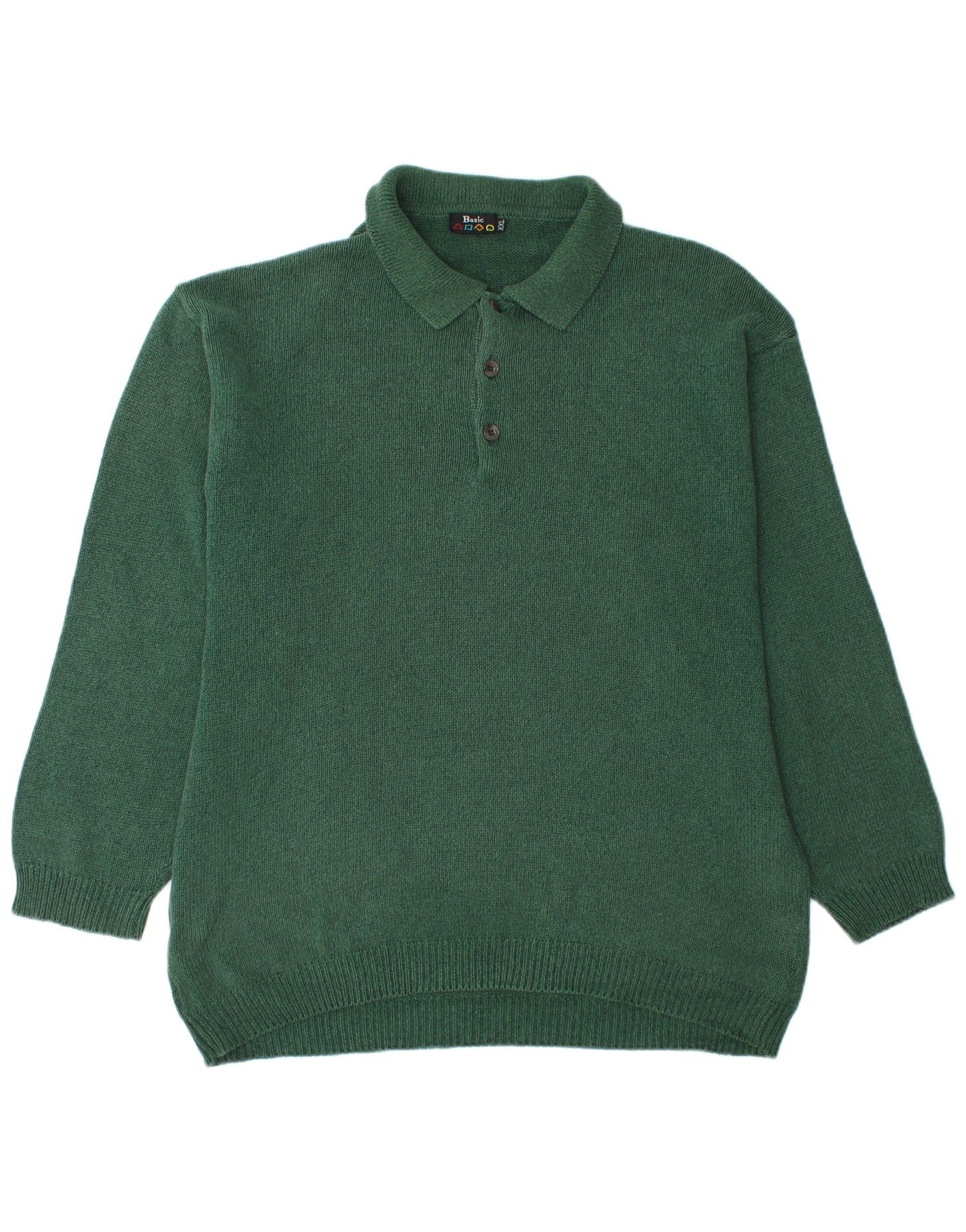 BASIC Pull col polo pour homme 2XL Vert Coton