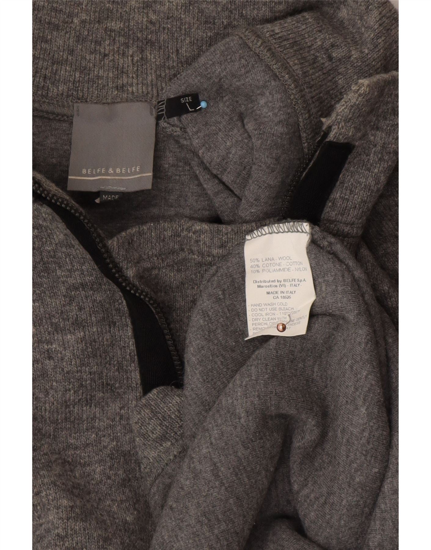 BELFE & BELFE Pull col zippé pour homme en laine grise