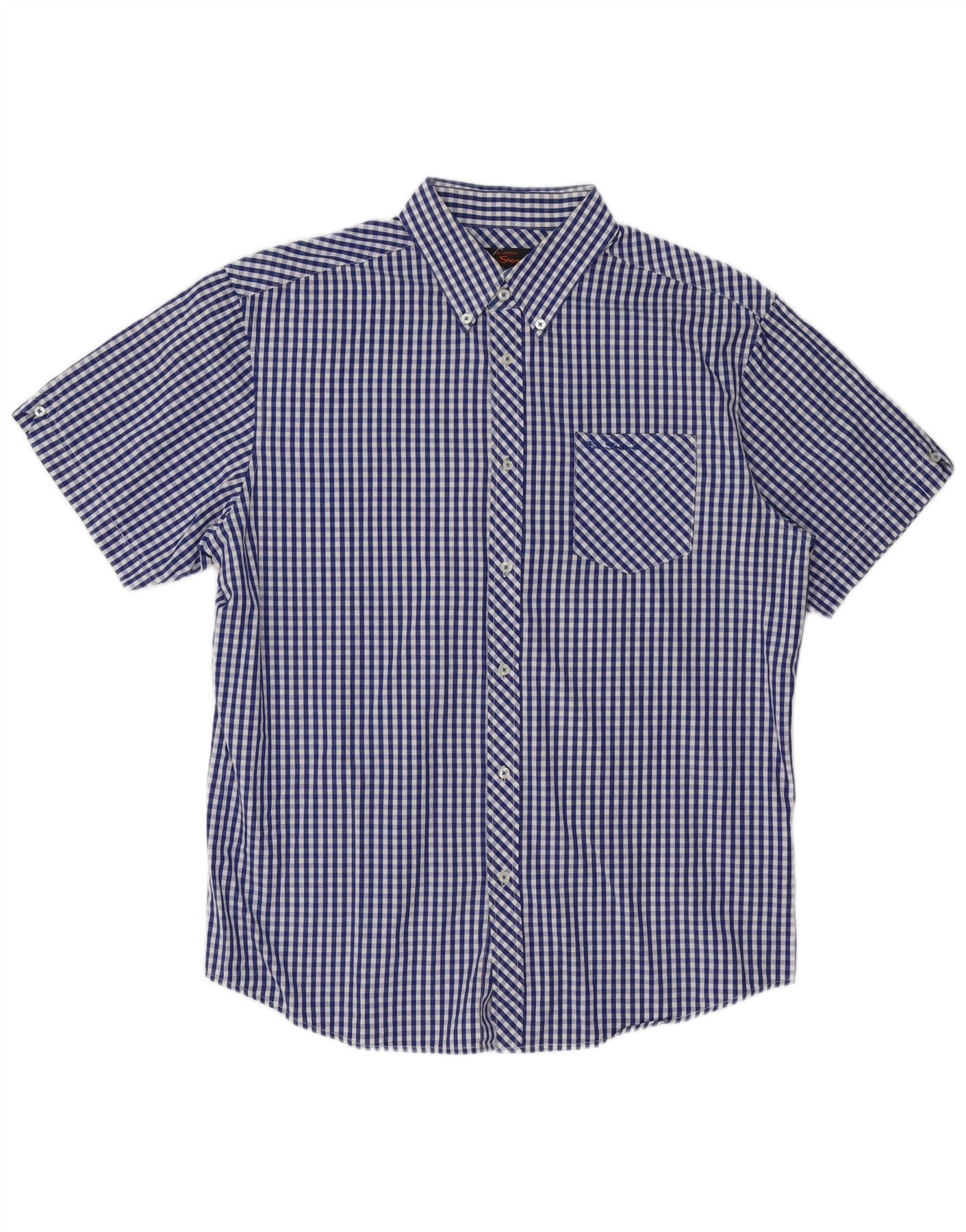 BEN SHERMAN Chemise à manches courtes pour homme XL en coton vichy bleu