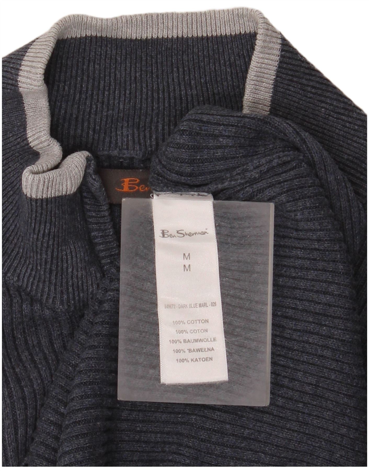 BEN SHERMAN Mens Zip Neck Jumper Sweater Medium Navy Blue Cotton