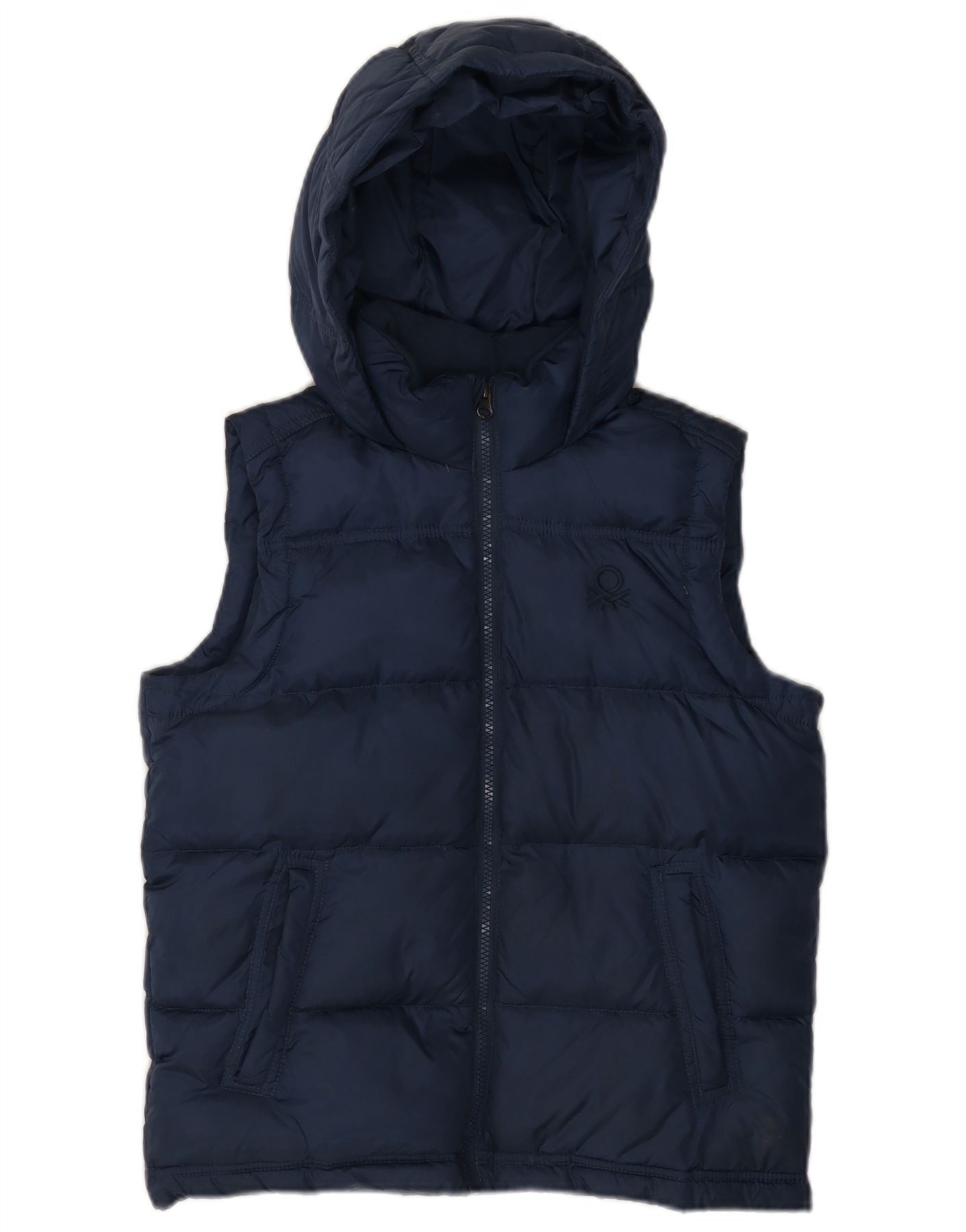 BENETTON Gilet rembourré à capuche pour garçon 11-12 ans 2XL Bleu marine Polyamide