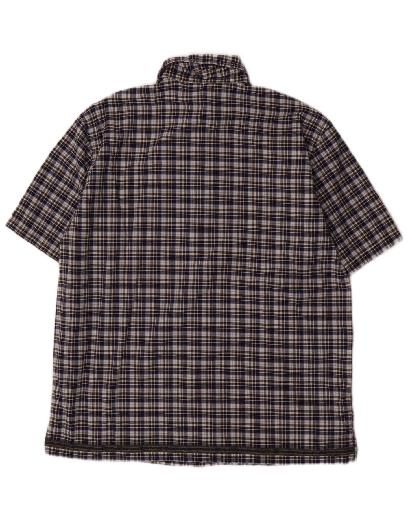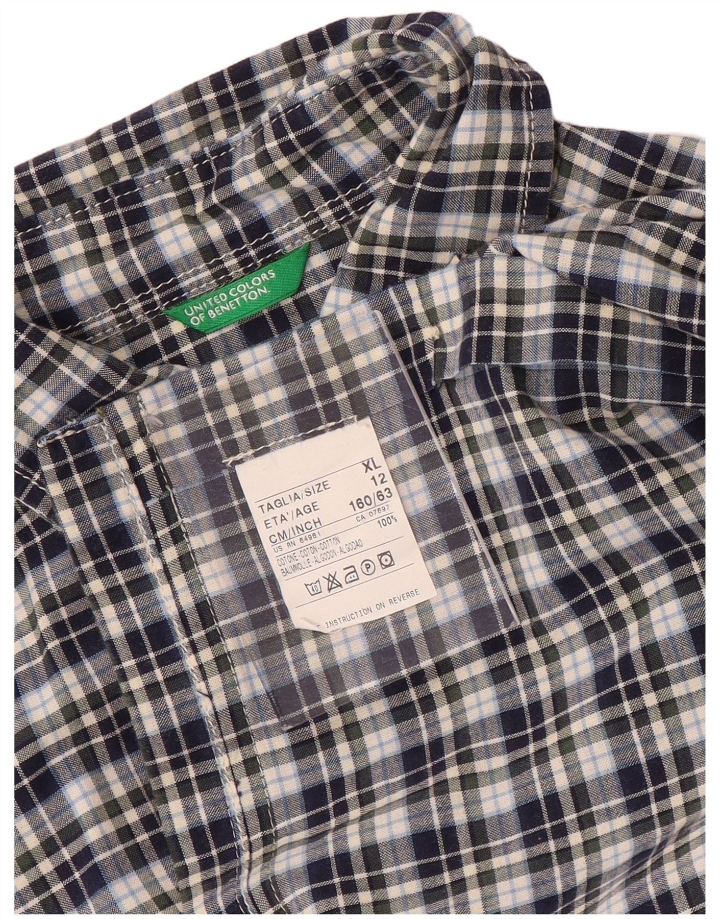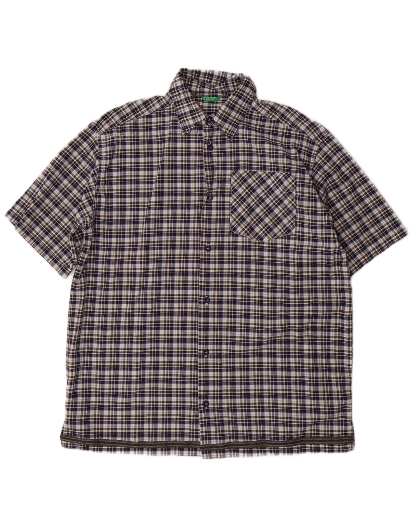 BENETTON Chemise à Manches Courtes Garçon 11-12 ans XL Bleu Marine à Carreaux Coton