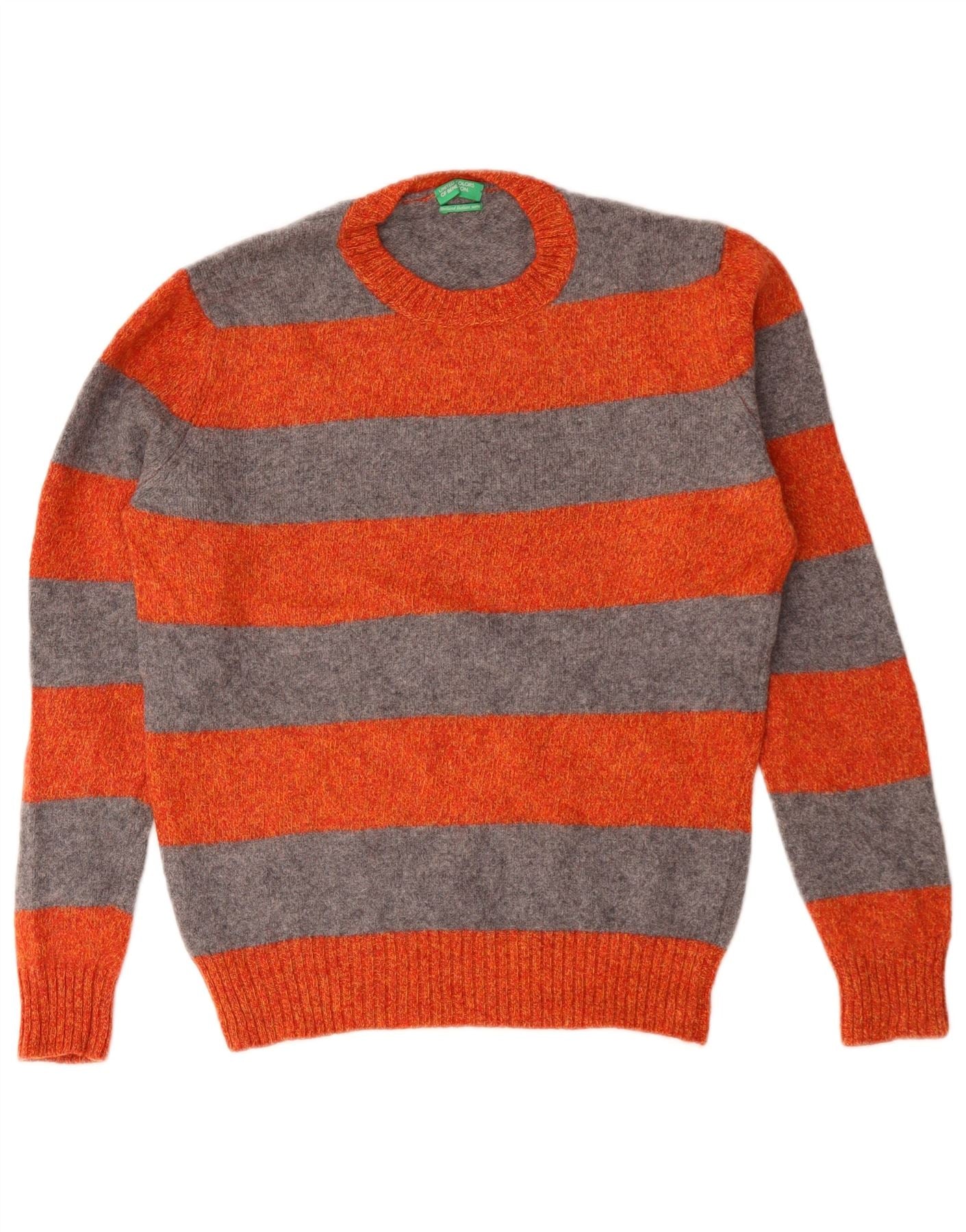 Home > Vêtements Benetton vintage > Pour des hommes > BENETTON Pull col rond pour homme en laine vierge rayée orange