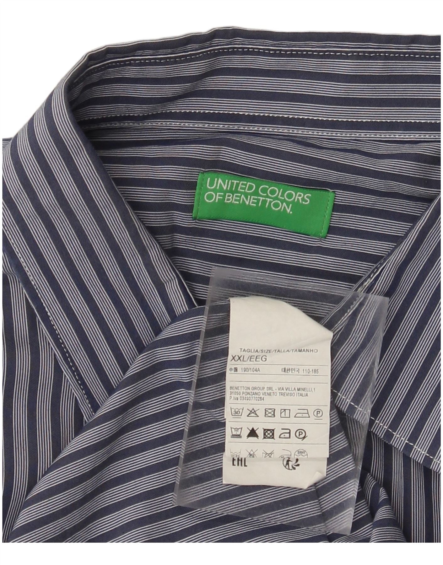 Benetton Chemise Homme 2XL Bleu Marine En Coton À Rayures