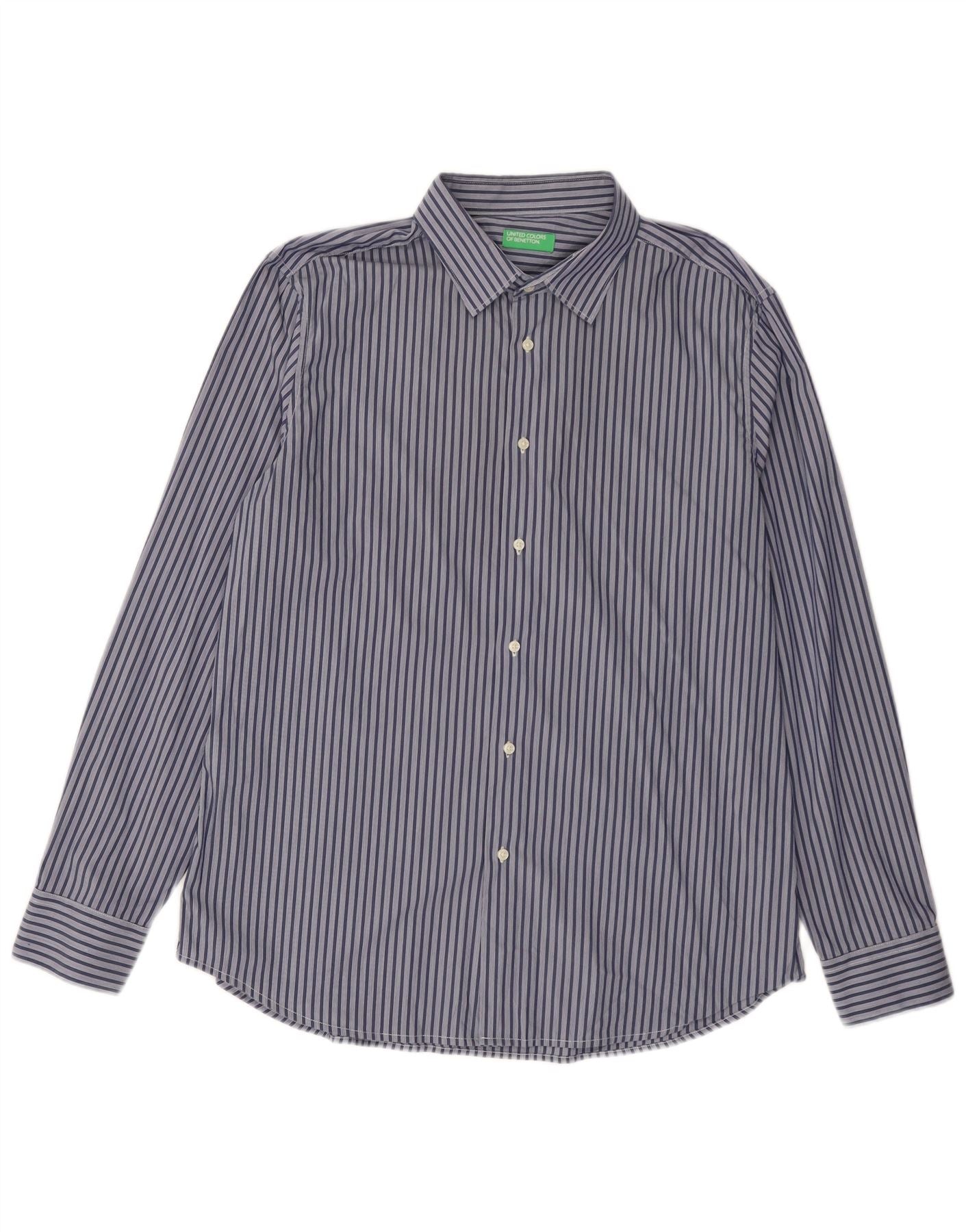 Home > Vêtements Benetton vintage > Pour des hommes > Benetton Chemise Homme 2XL Bleu Marine En Coton À Rayures