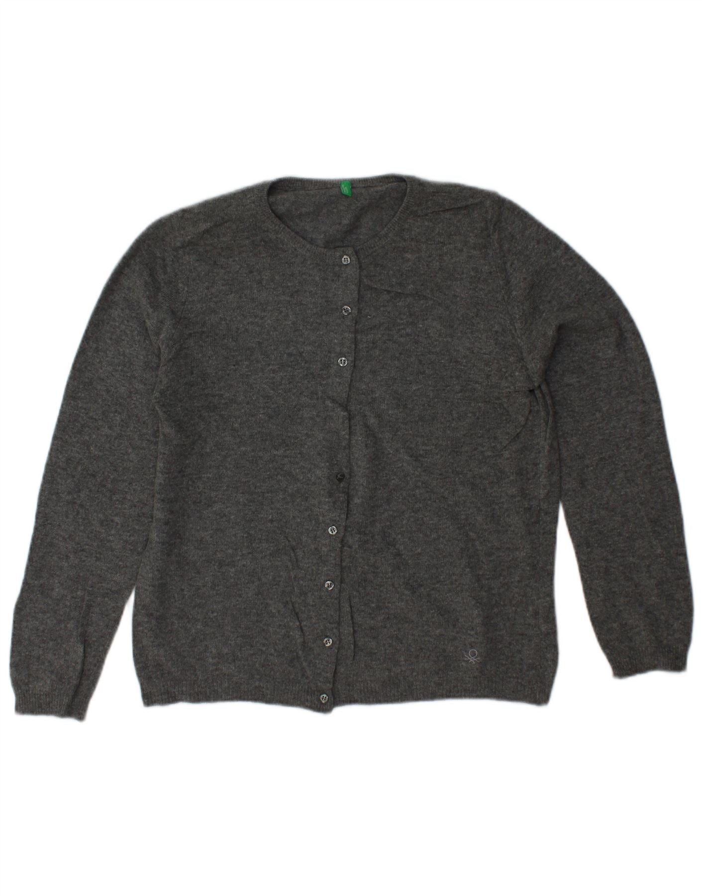 BENETTON Pull Cardigan Femme UK 10 Petit Gris