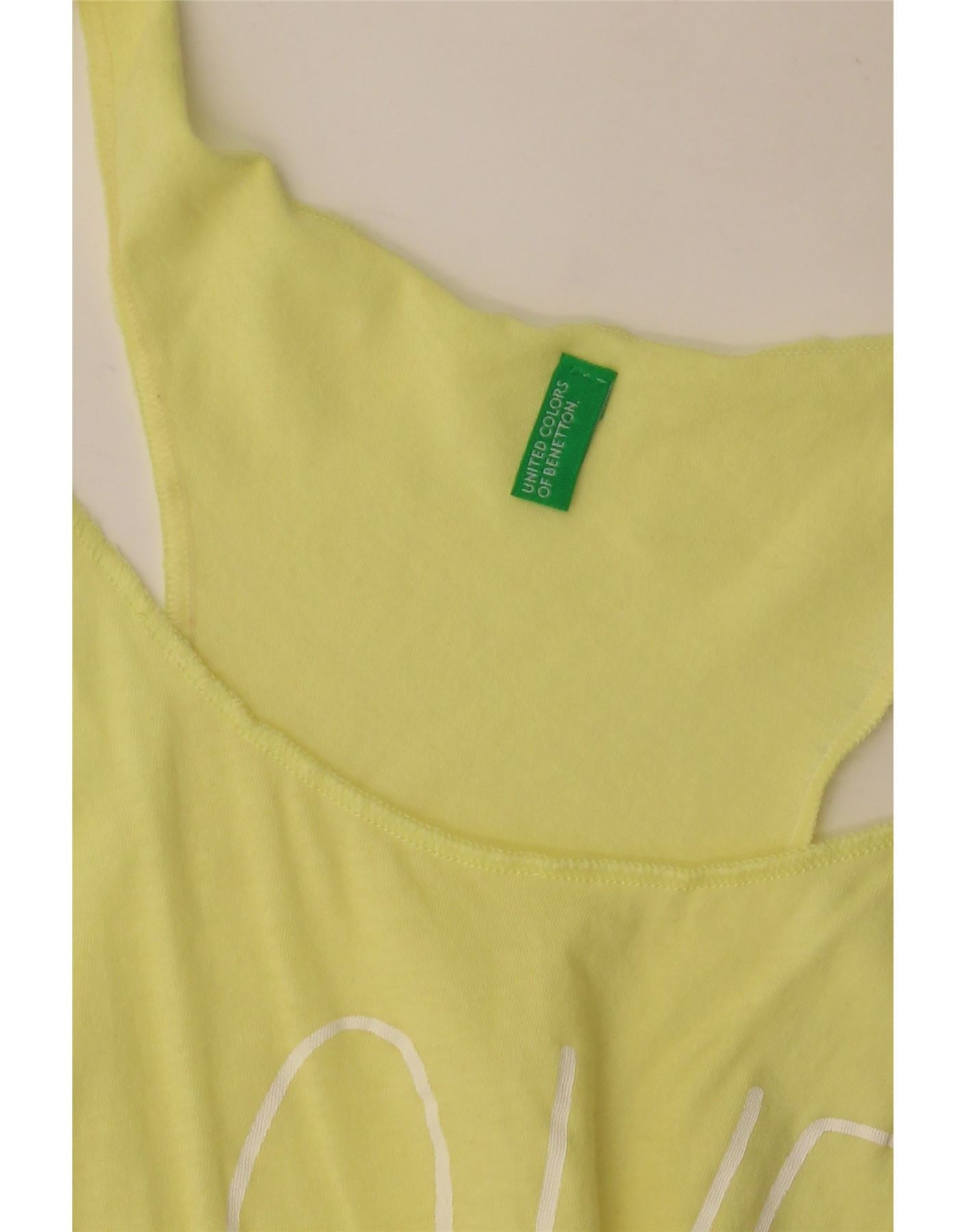 BENETTON Haut tunique graphique pour femme UK 8 Small Jaune Colourblock Beach