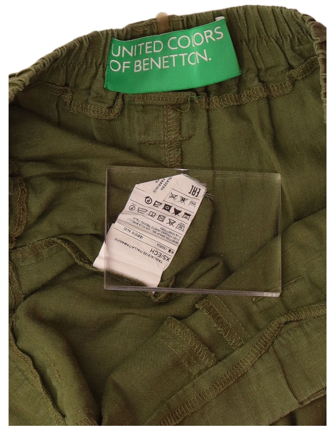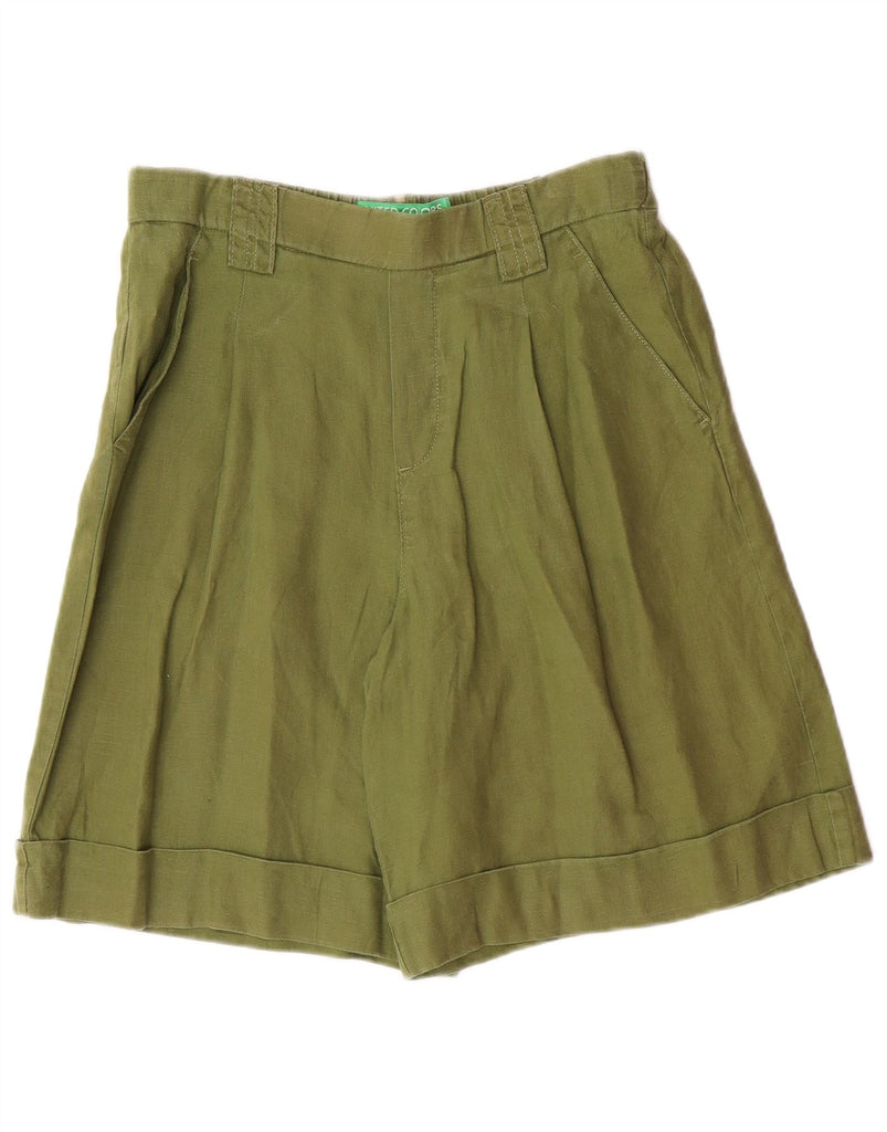 BENETTON Short décontracté taille haute pour femme XS W28 Lin vert