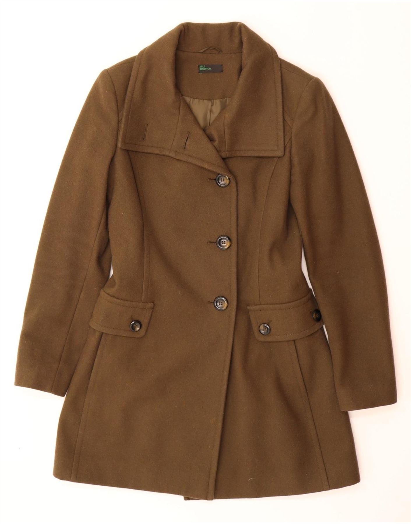 BENETTON Manteau Femme UK 8 Petite Laine Marron