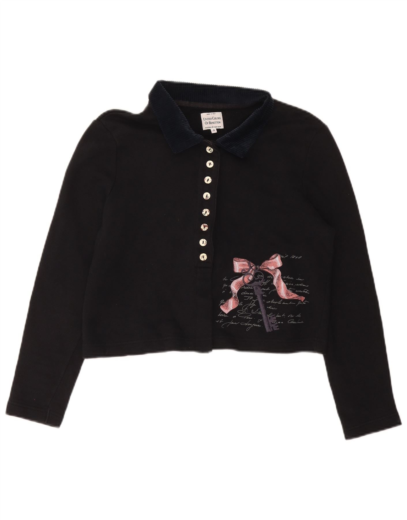Home > Vêtements Benetton vintage > aux femmes > BENETTON Polo court graphique surdimensionné pour femme UK 10 Small Noir