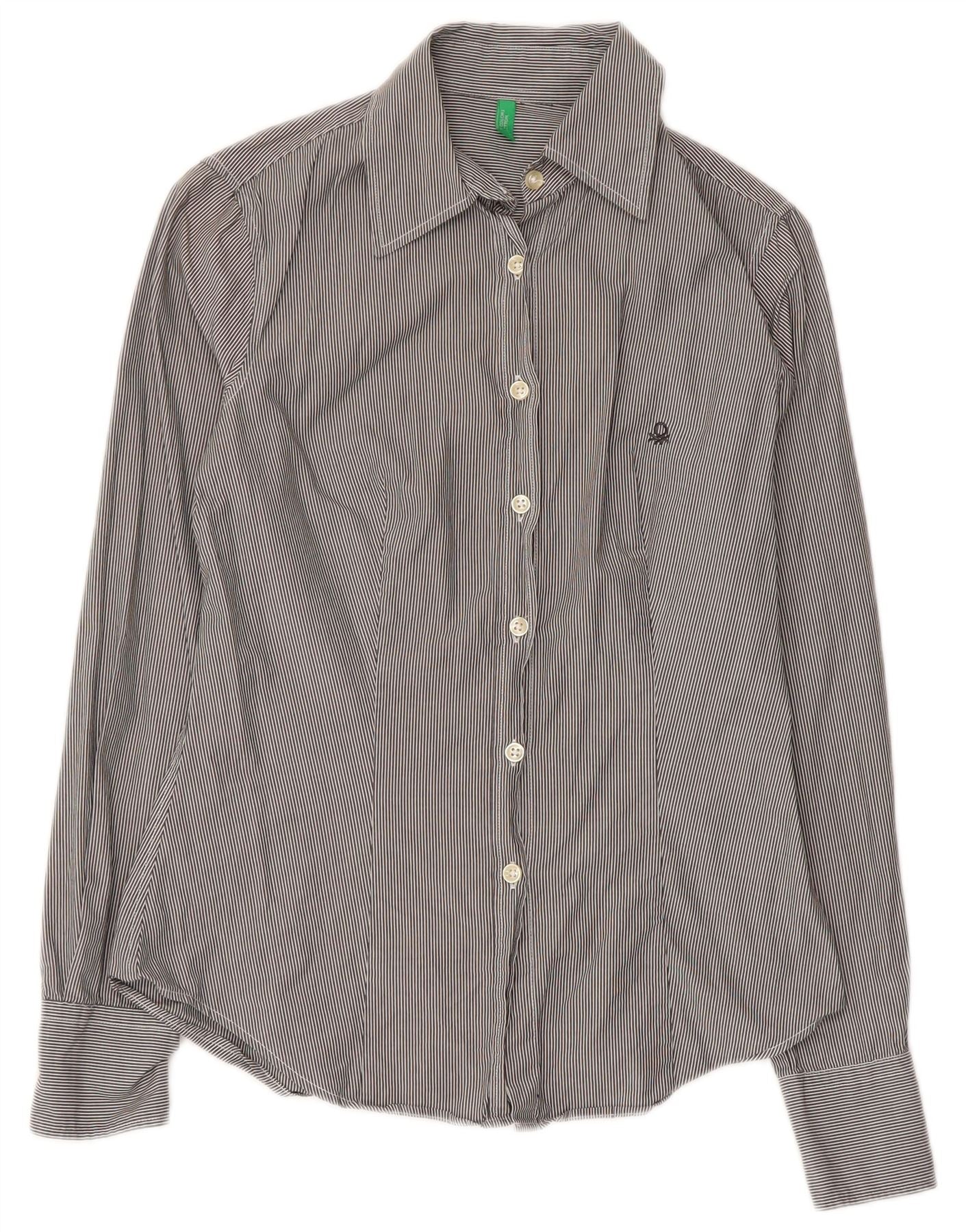 BENETTON Chemise Femme UK 8 Petite Rayure Grise