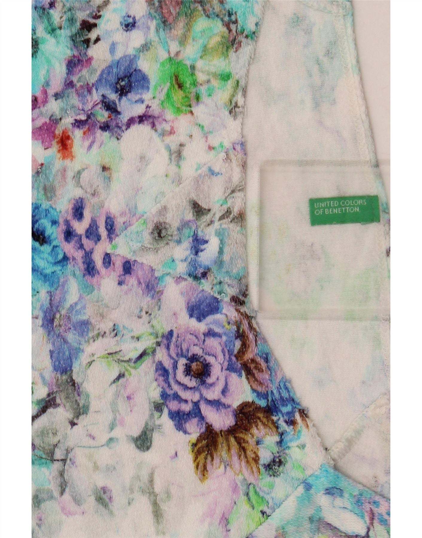 BENETTON T-Shirt Femme Top UK 14 Grand Floral Multicolore