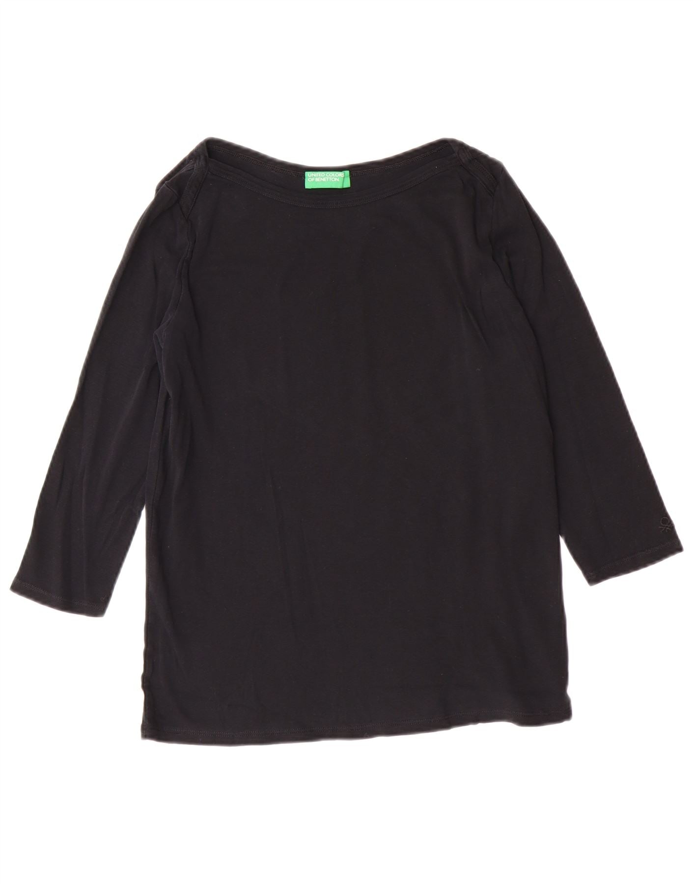 BENETTON Haut Femme Manches 3/4 UK 14 Large Noir Coton