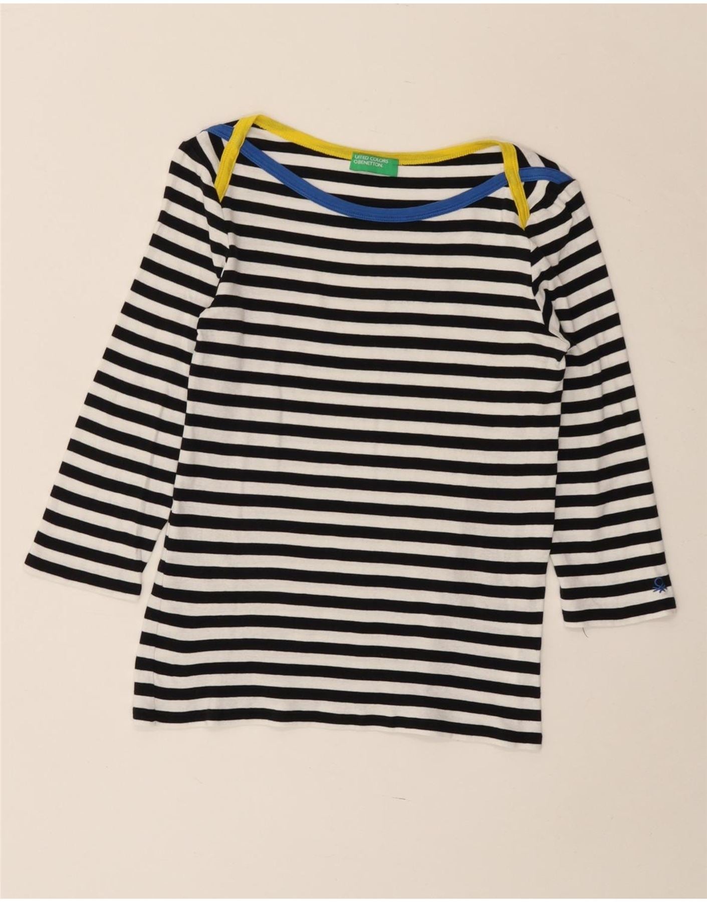 Benetton Haut Femme Manches 3/4 UK 8 Petit Bleu Marine Rayé