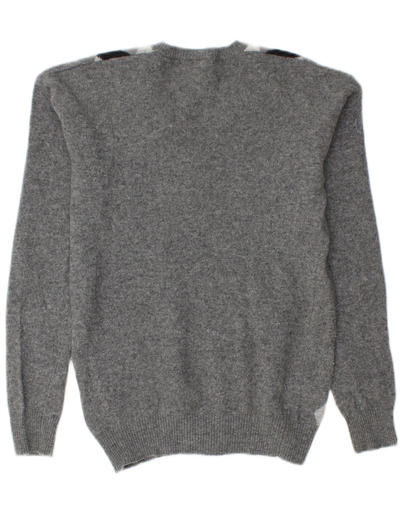 Home > Vêtements Benetton vintage > aux femmes > BENETTON Pull col en V pour femme UK 10 Petit gris Argyle/Diamond Laine