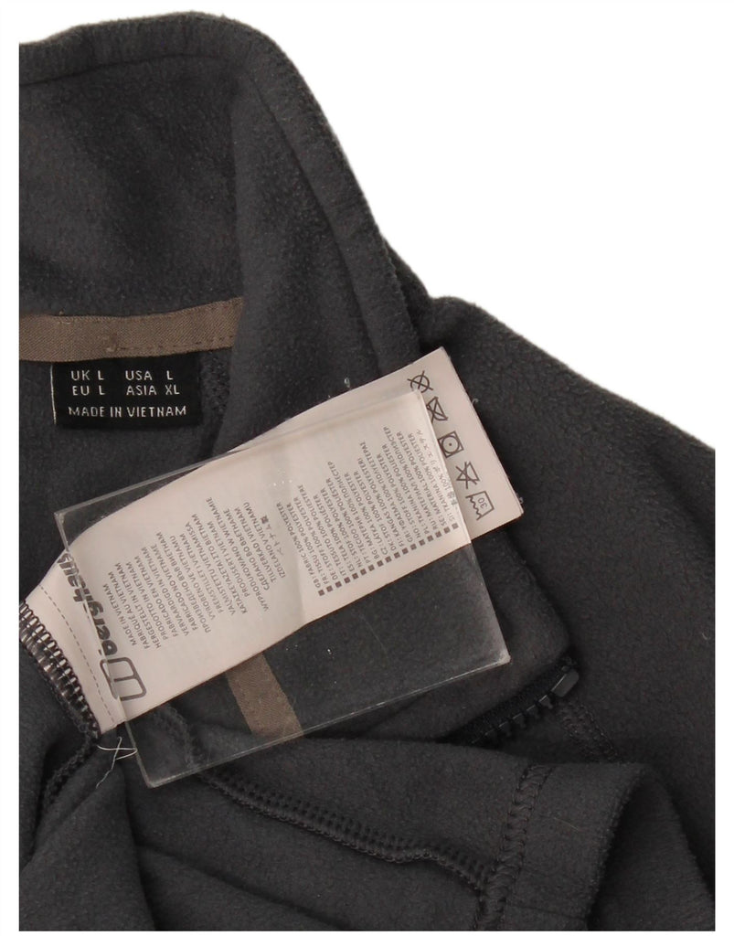 - AI Description: This Berghaus mens zip hoodie sweater is crafted from soft grey polyester fleece. It features a high neck and long sleeves. The full zip closure offers versatile wear. A subtle logo accent adds brand recognition. Practical pockets enhance its functional design. The regular fit ensures comfortable movement, ideal for sports or casual wear.