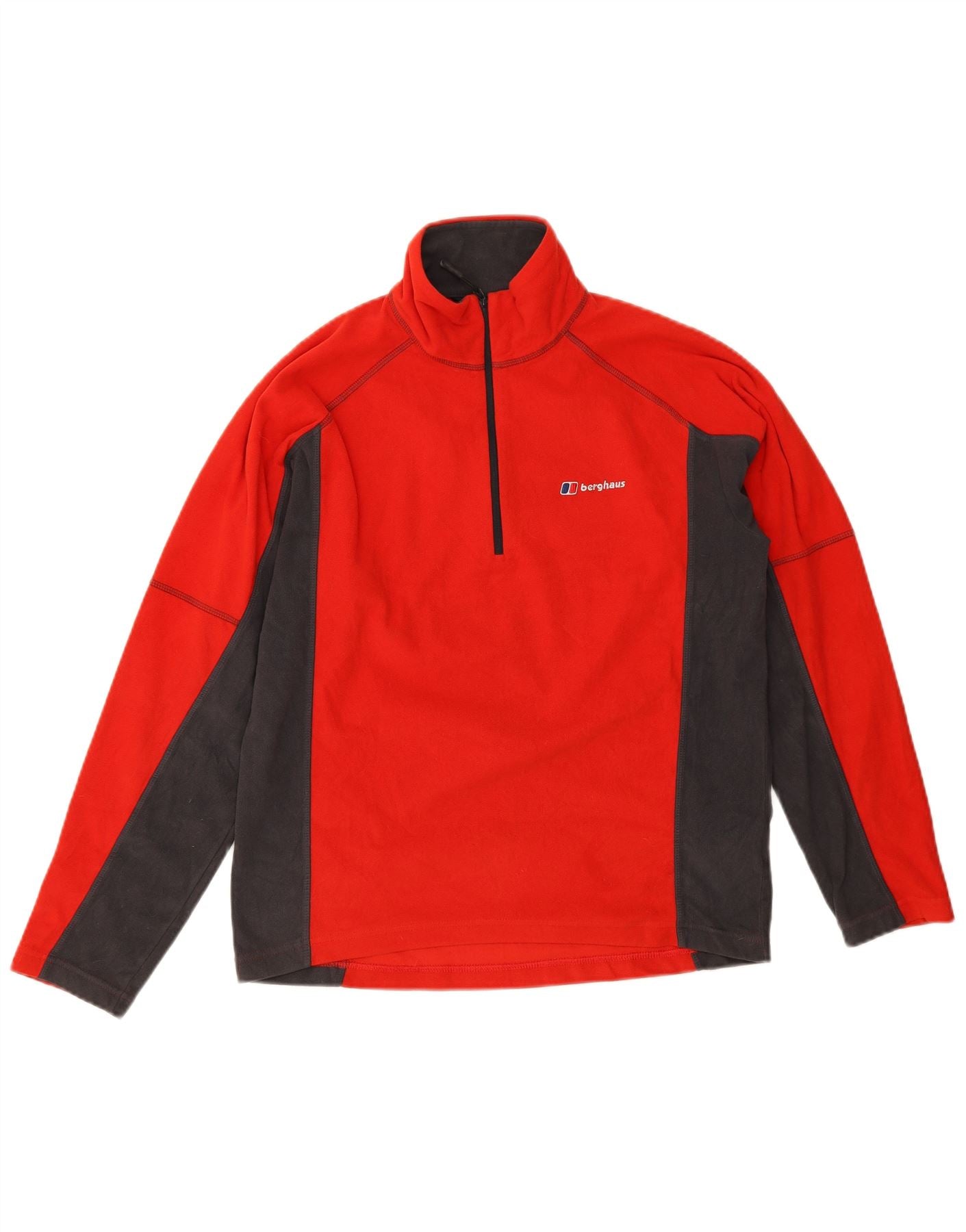BERGHAUS Mens Zip Neck Fleece Jumper Medium Red Colourblock Polyester