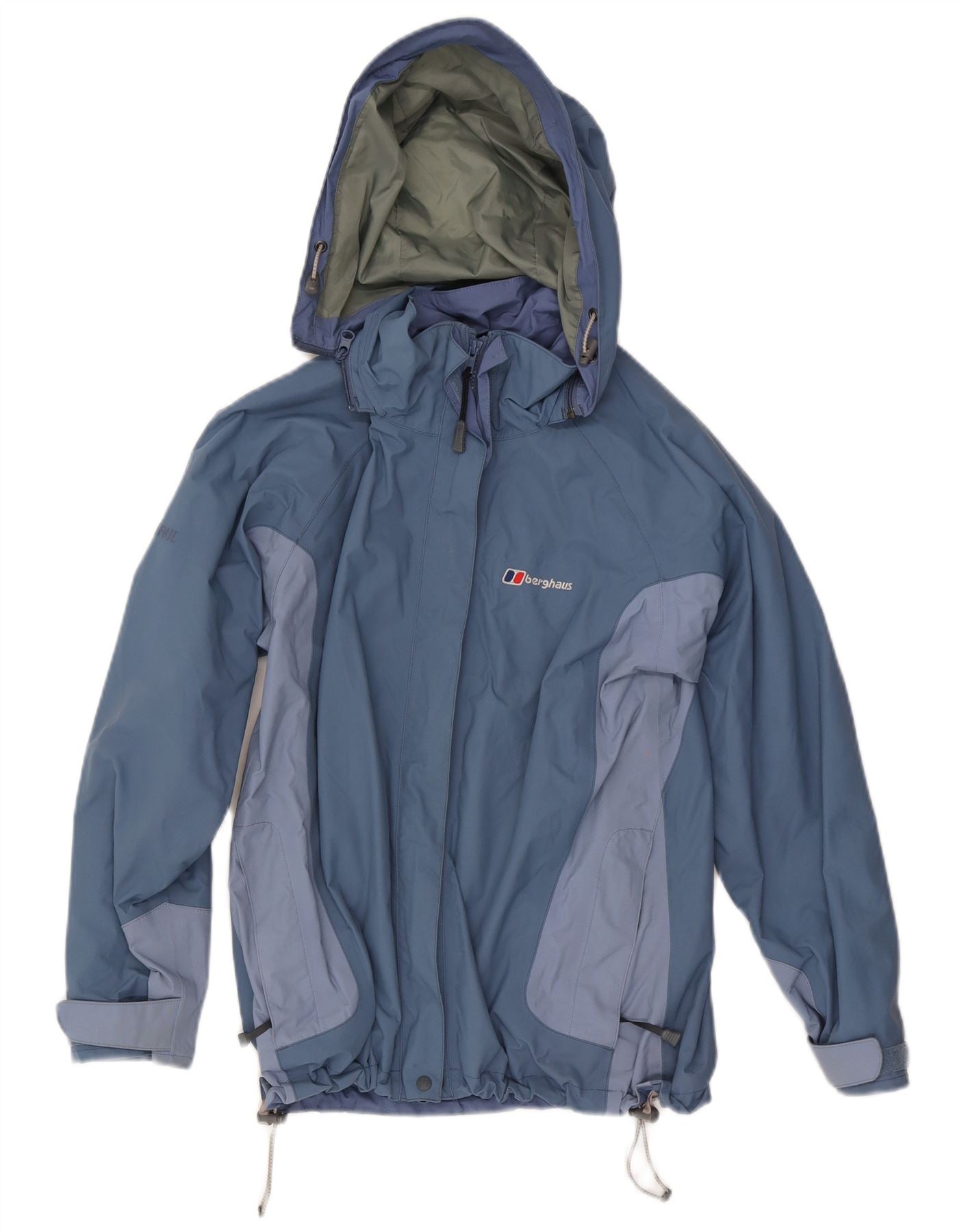Home > Vêtements Berghaus Vintage > aux femmes > Vestes > BERGHAUS Veste de pluie à capuche pour femme UK 10 Small Bleu Colorblock Nylon