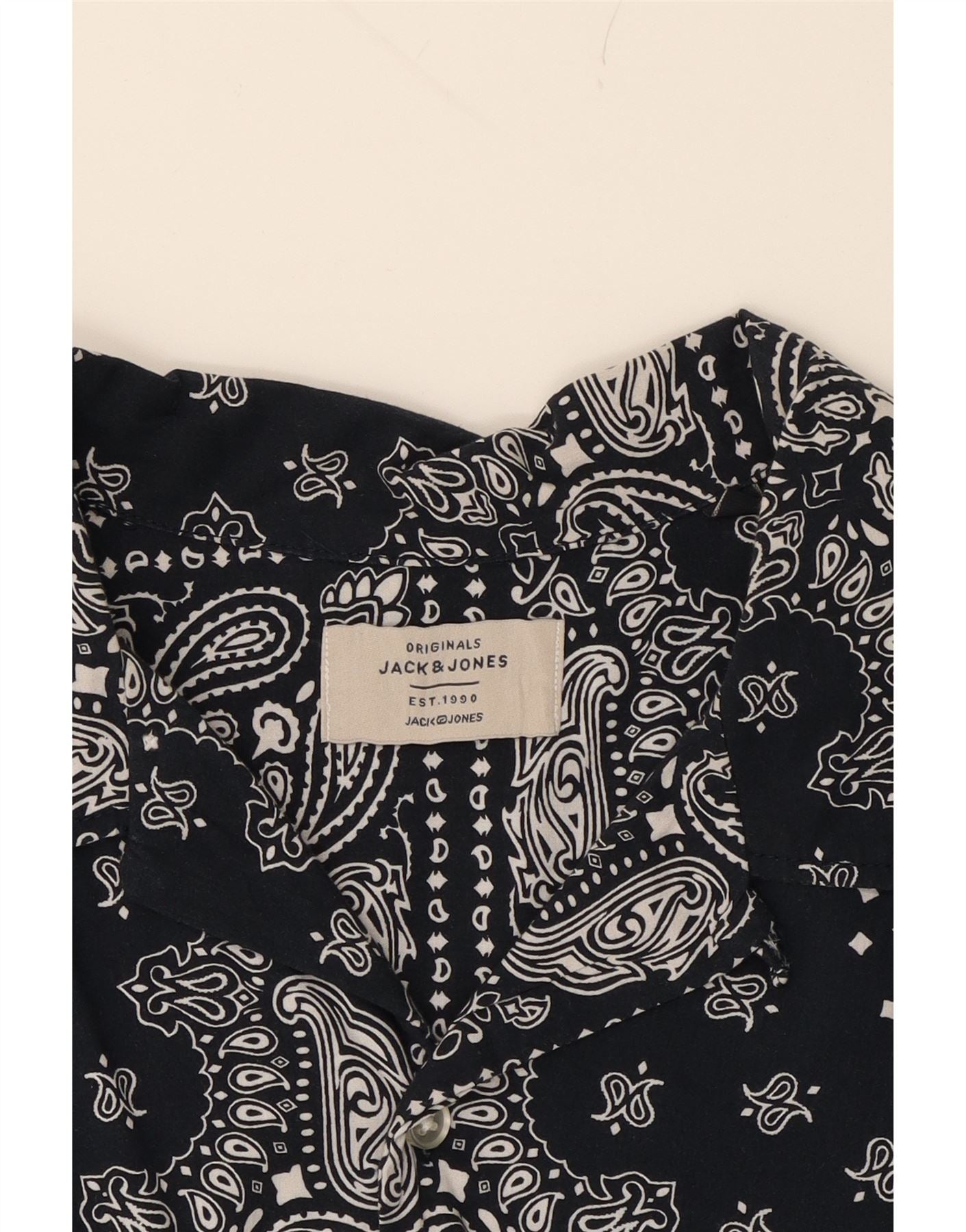 BETTY JACKSON Mens Short Sleeve Shirt Large Navy Blue Floral Cotton