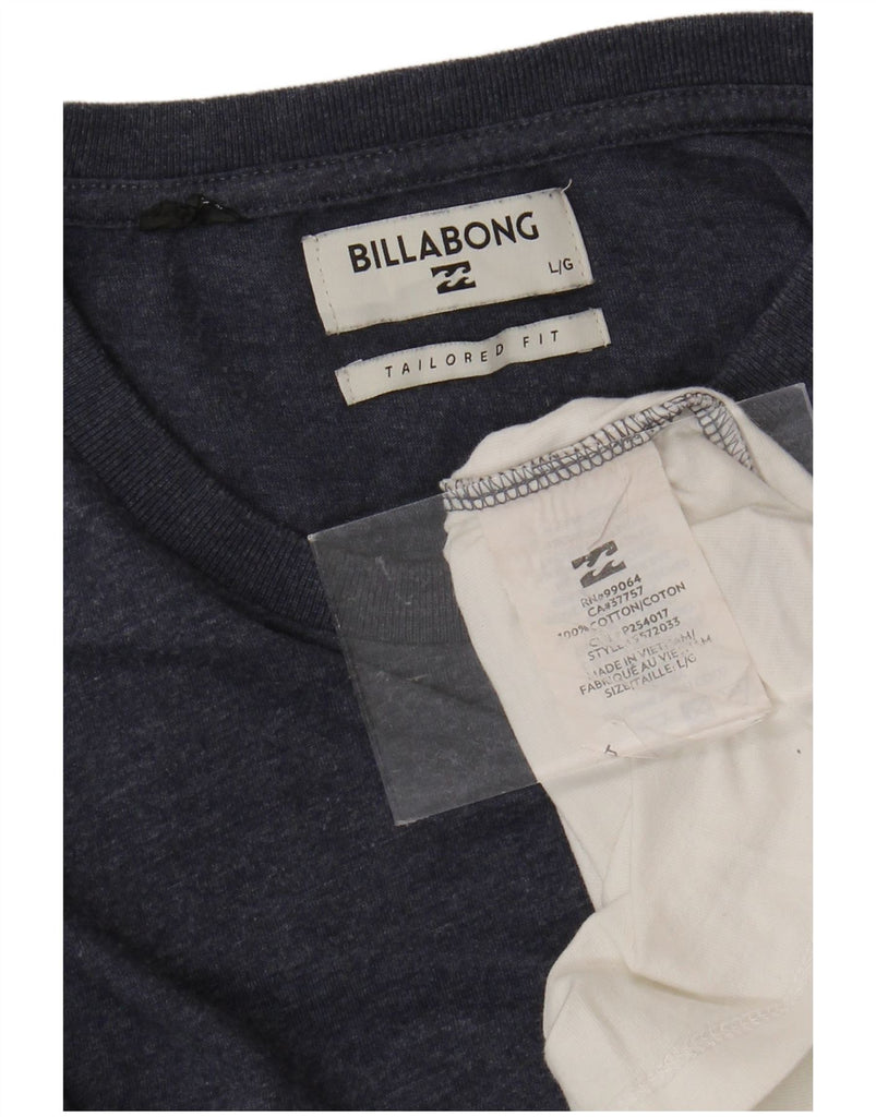 BILLABONG Mens Tailored Fit T-Shirt Top Large Navy Blue Colourblock Cotton