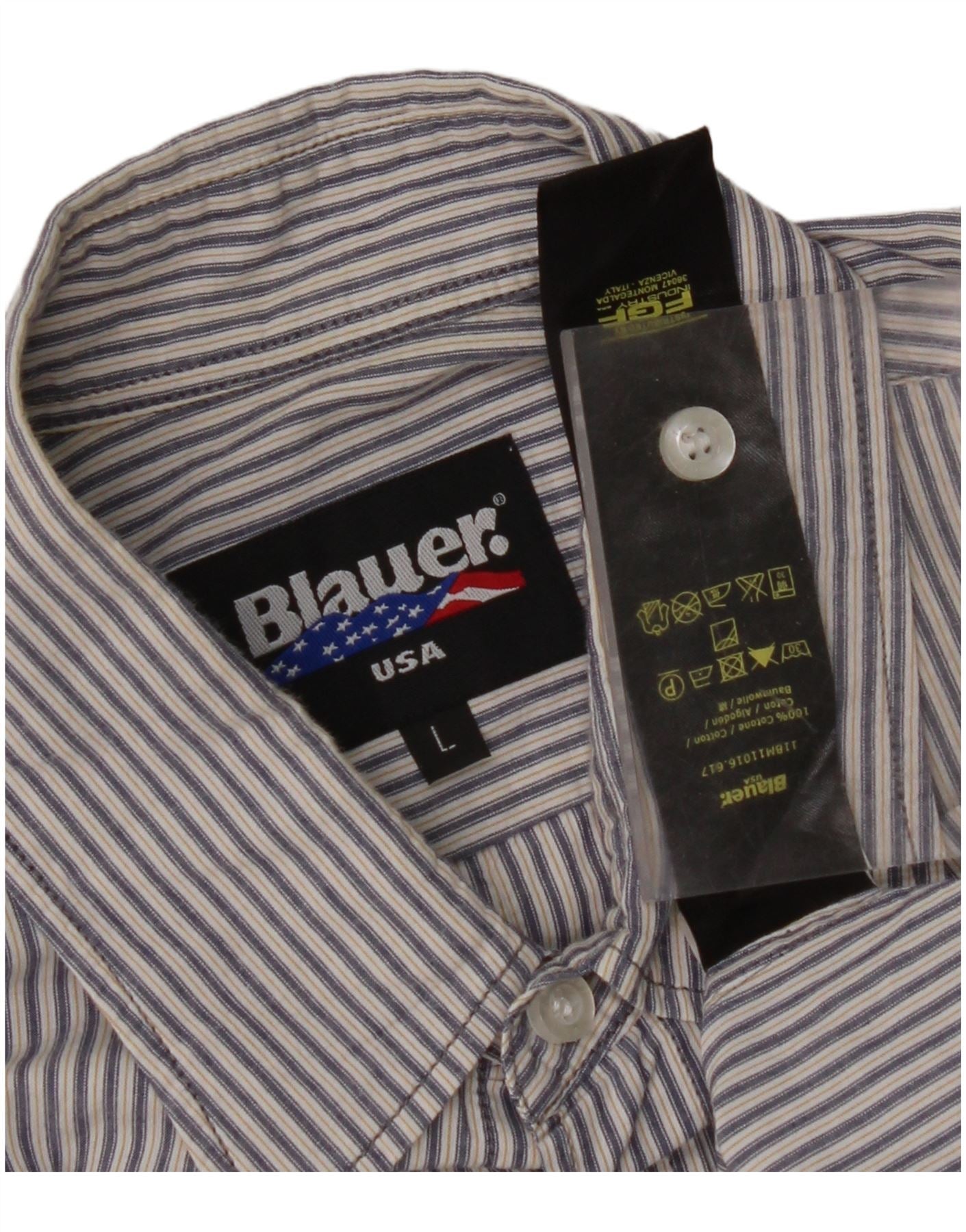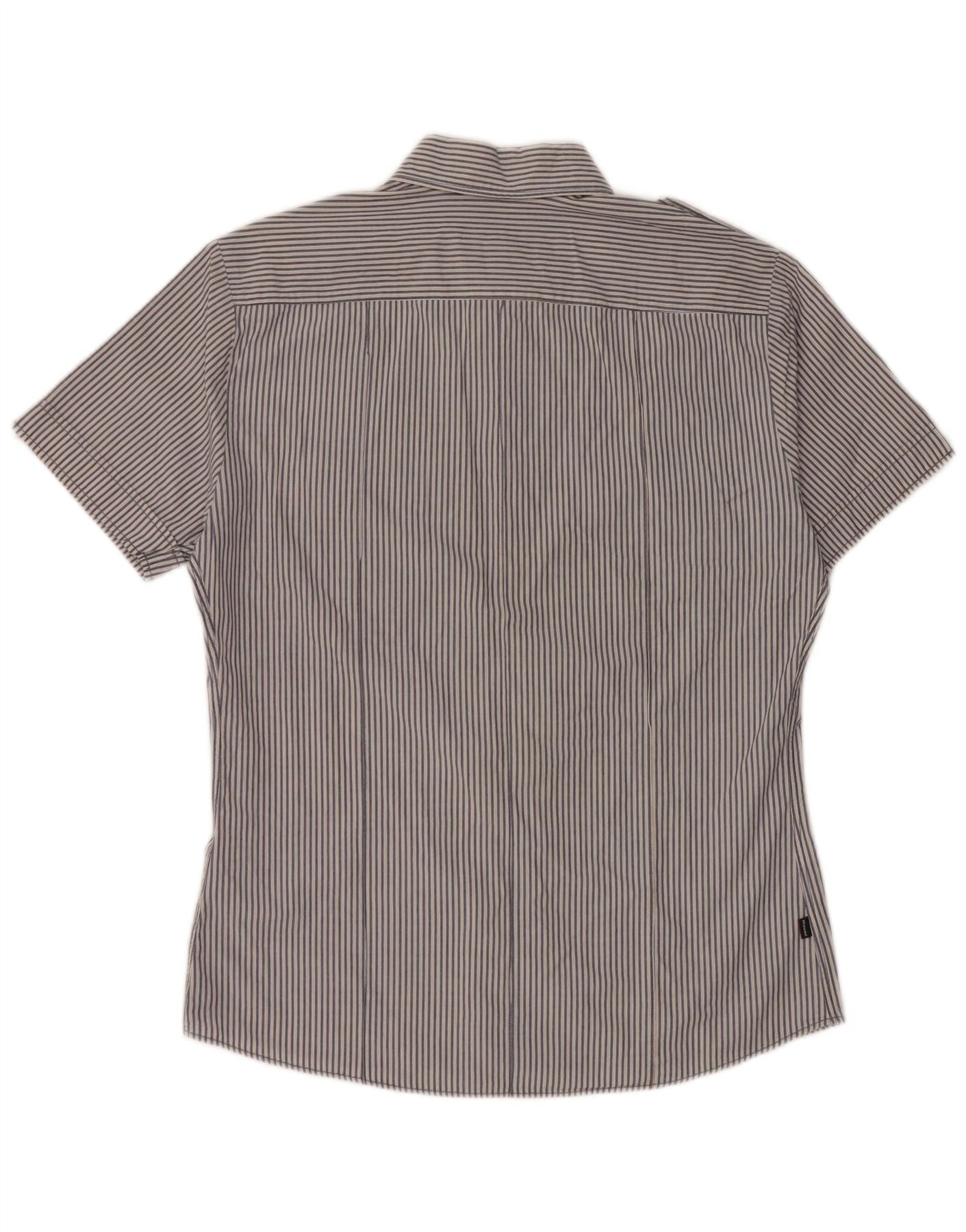 BLAUER Chemise militaire à manches courtes pour homme en coton à fines rayures bleues