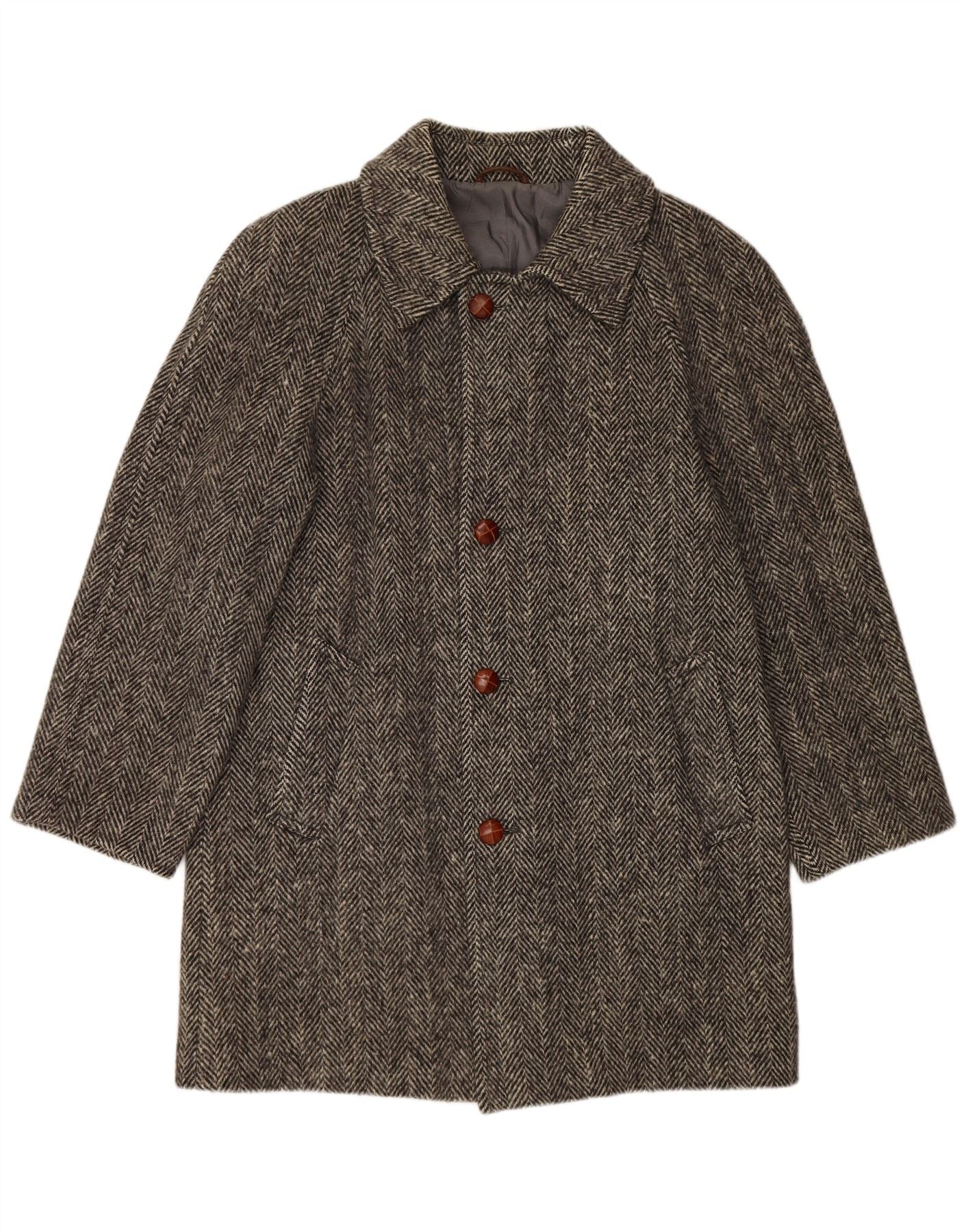 BLUE DEVIL Manteau Homme UK 38 Laine à Chevrons Gris Moyen