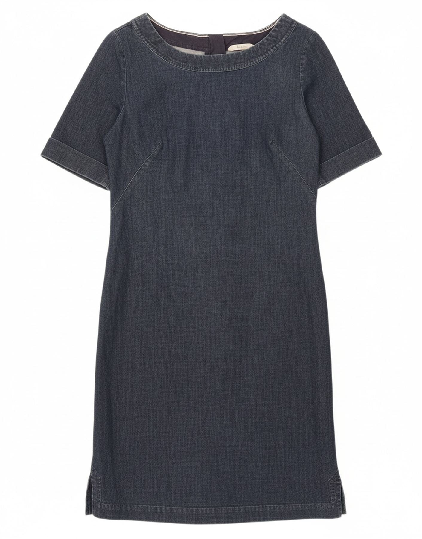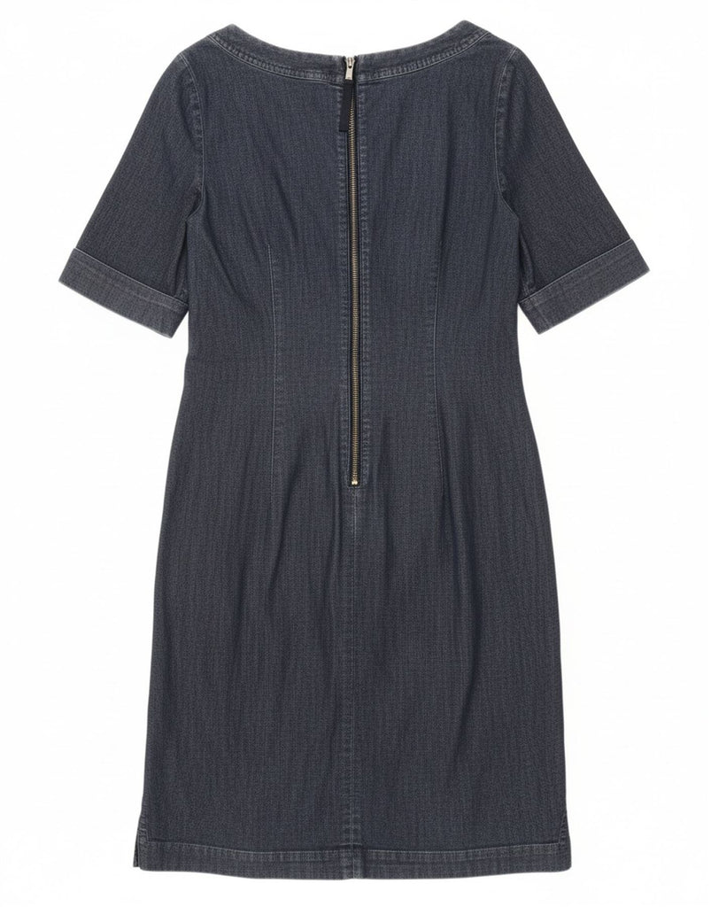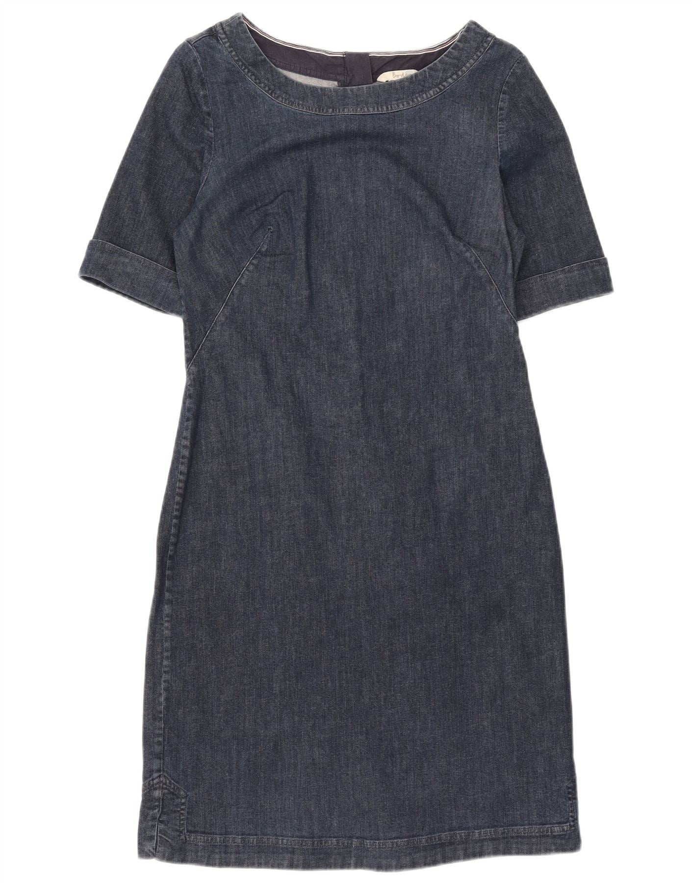 - AI Description: This Boden womens denim dress is crafted from a comfortable blue cotton blend with a hint of stretch. It features a classic round neck and practical short sleeves. The dress offers a regular fit, ensuring both comfort and a flattering silhouette. A full zip closure provides easy wear, maintaining a sleek, uncluttered look. The durable denim fabric makes it a versatile wardrobe essential.