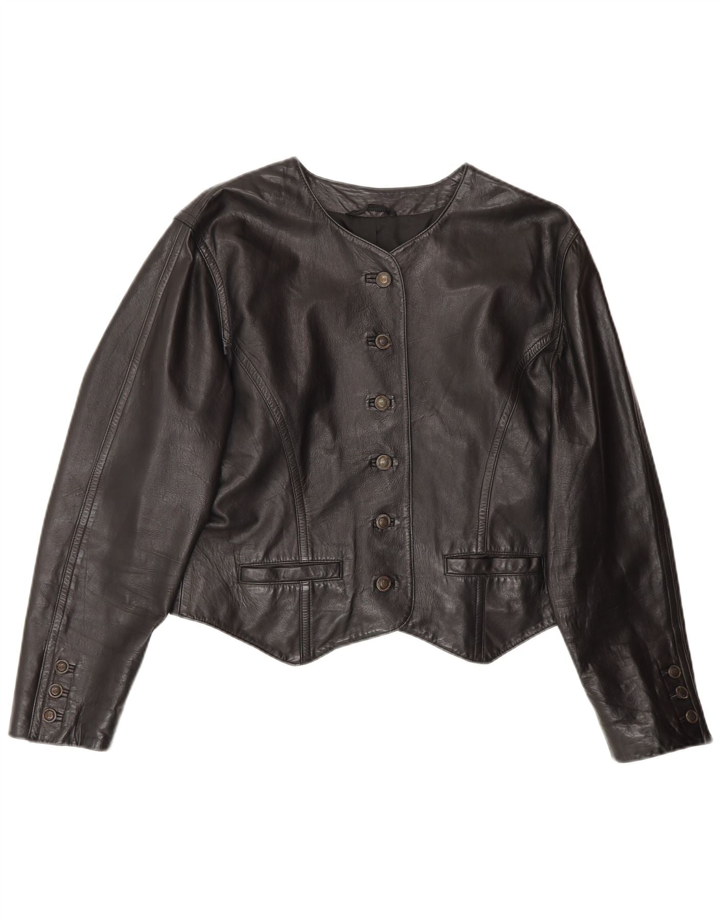 BOGNER Veste en cuir courte pour femme UK 14 Medium Noir