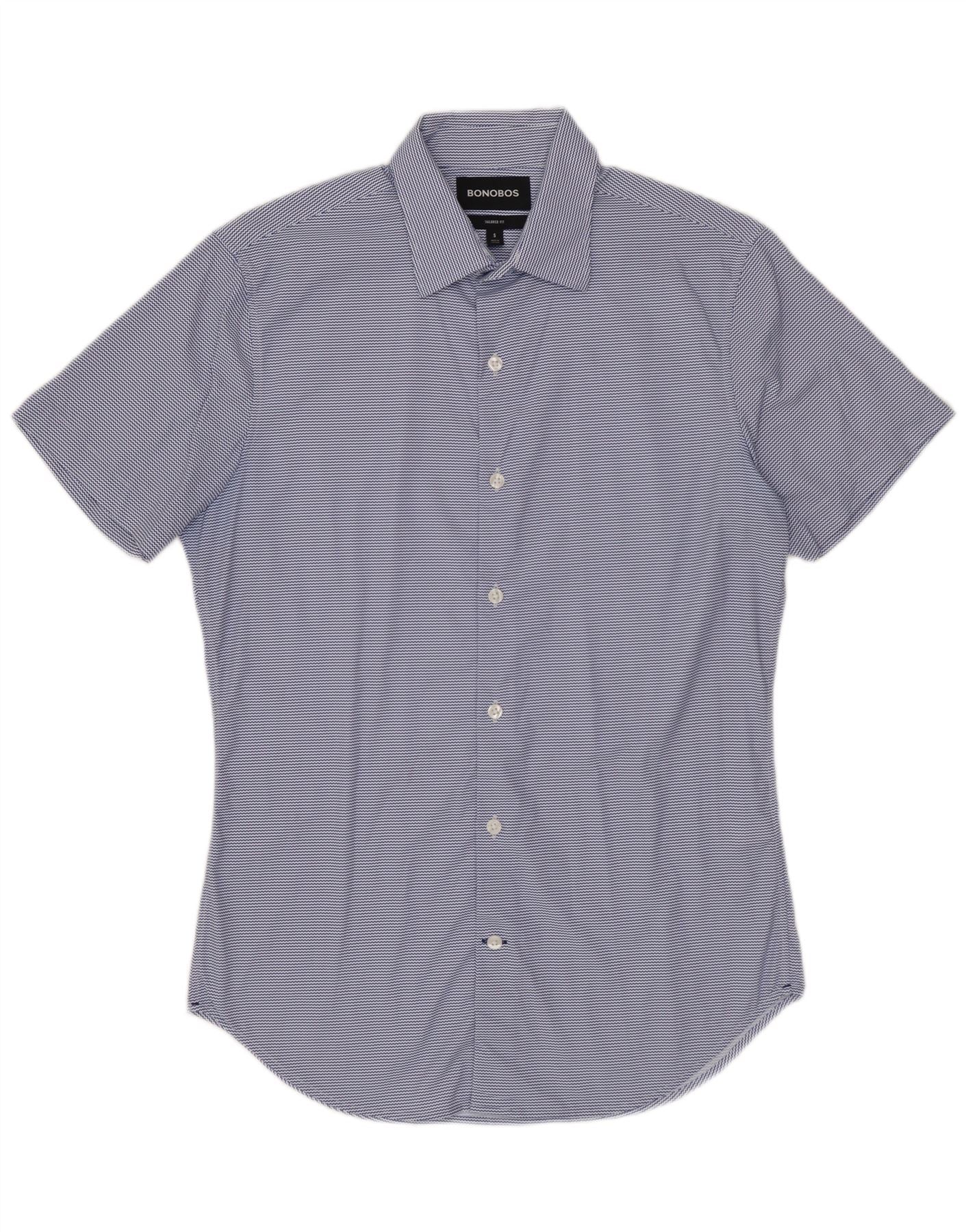 BONOBOS Chemise à manches courtes pour homme Coupe ajustée Petit nylon à fines rayures bleues