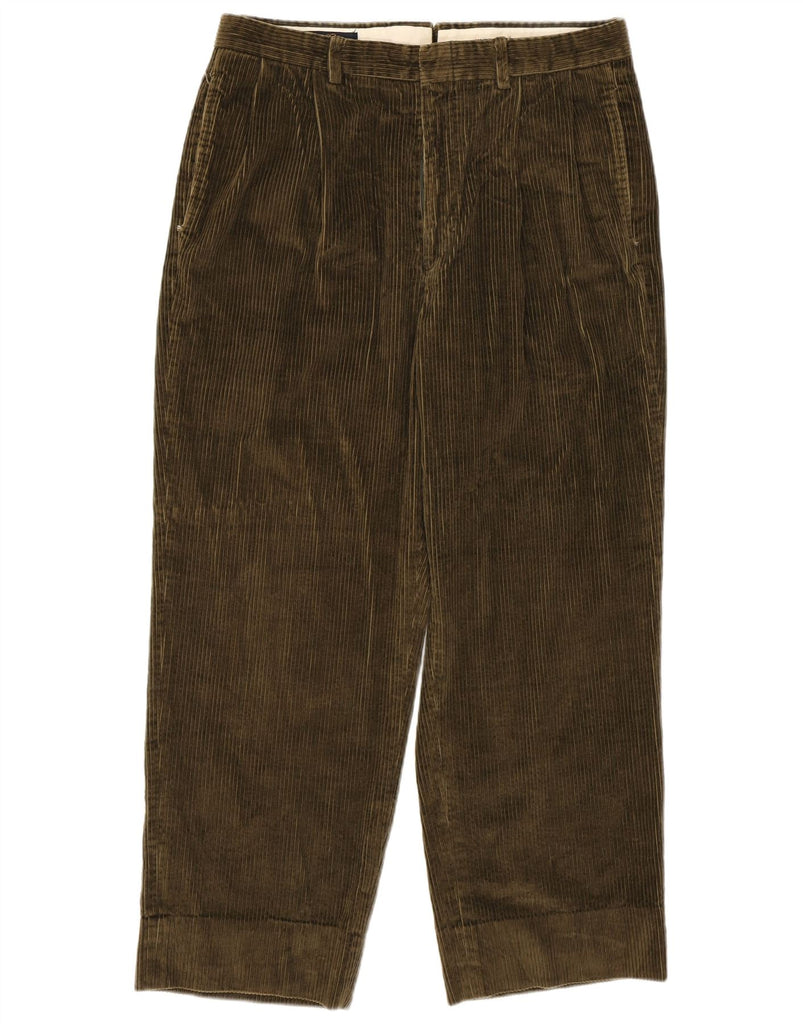 BROOKS BROTHERS Mens Loose Fit Pegged Corduroy Trousers W33 L27 Khaki
