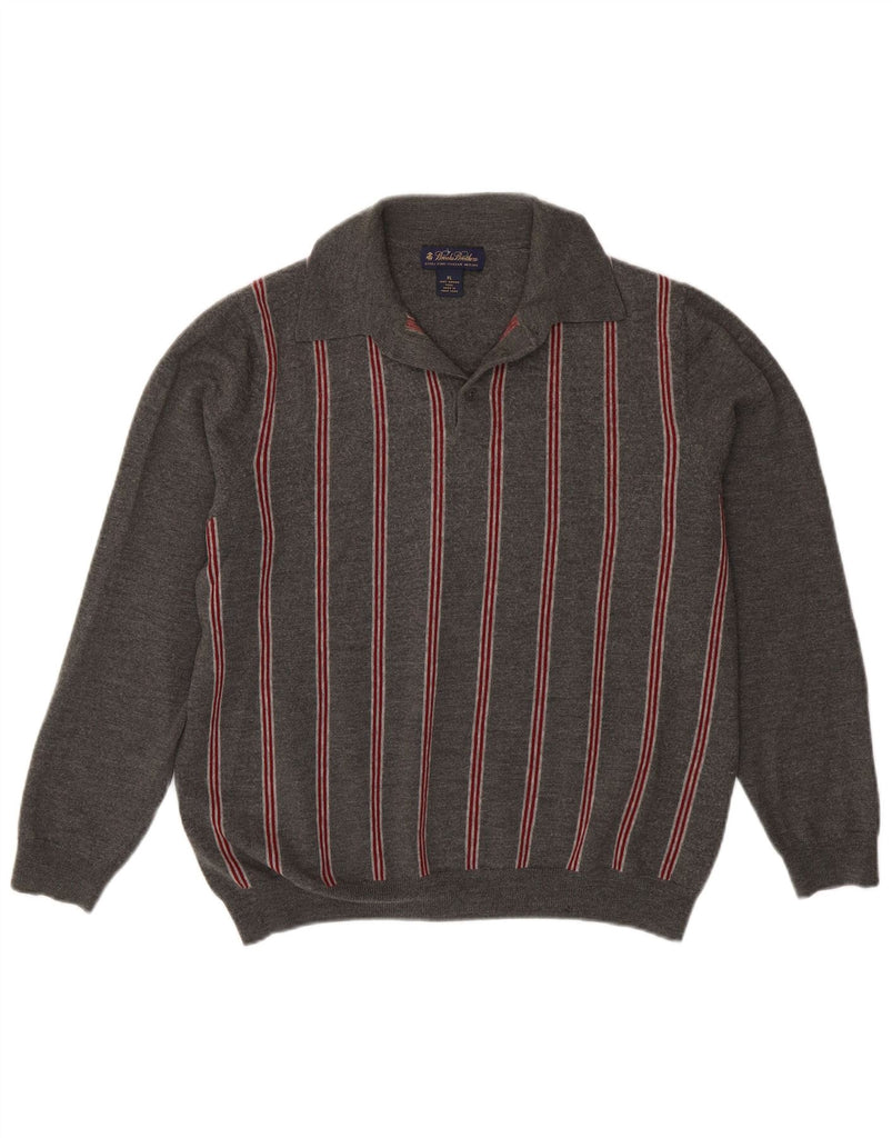 BROOKS BROTHERS Mens Polo Neck Jumper Sweater XL Grey Striped Merino Wool