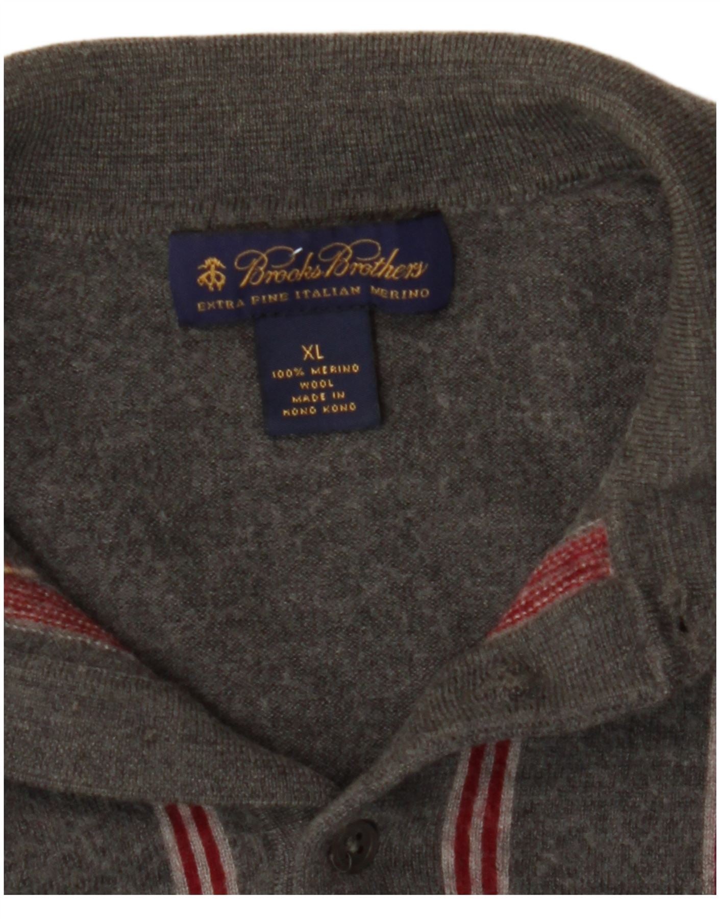 - AI Description: This Brooks Brothers boys polo neck jumper sweater is crafted from luxurious 100 percent Merino wool knit. It features a classic collared polo neck. A button placket adds refined detail. Long sleeves and a regular fit ensure comfortable wear. The grey fabric is enhanced with a subtle striped pattern. This piece offers timeless style and warmth.