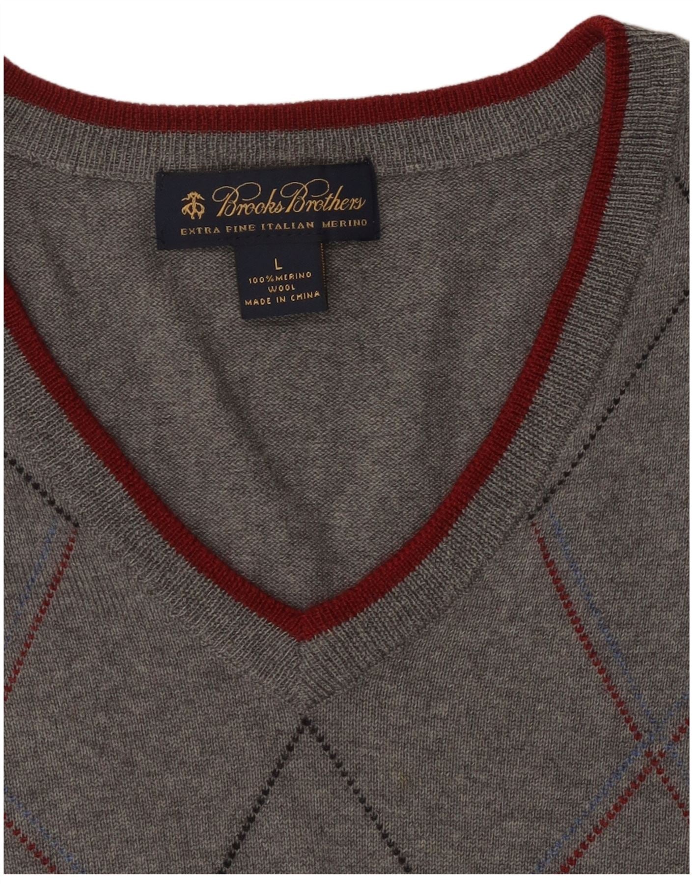BROOKS BROTHERS Pull à col en V pour homme Taille L Gris Argyle/Diamant