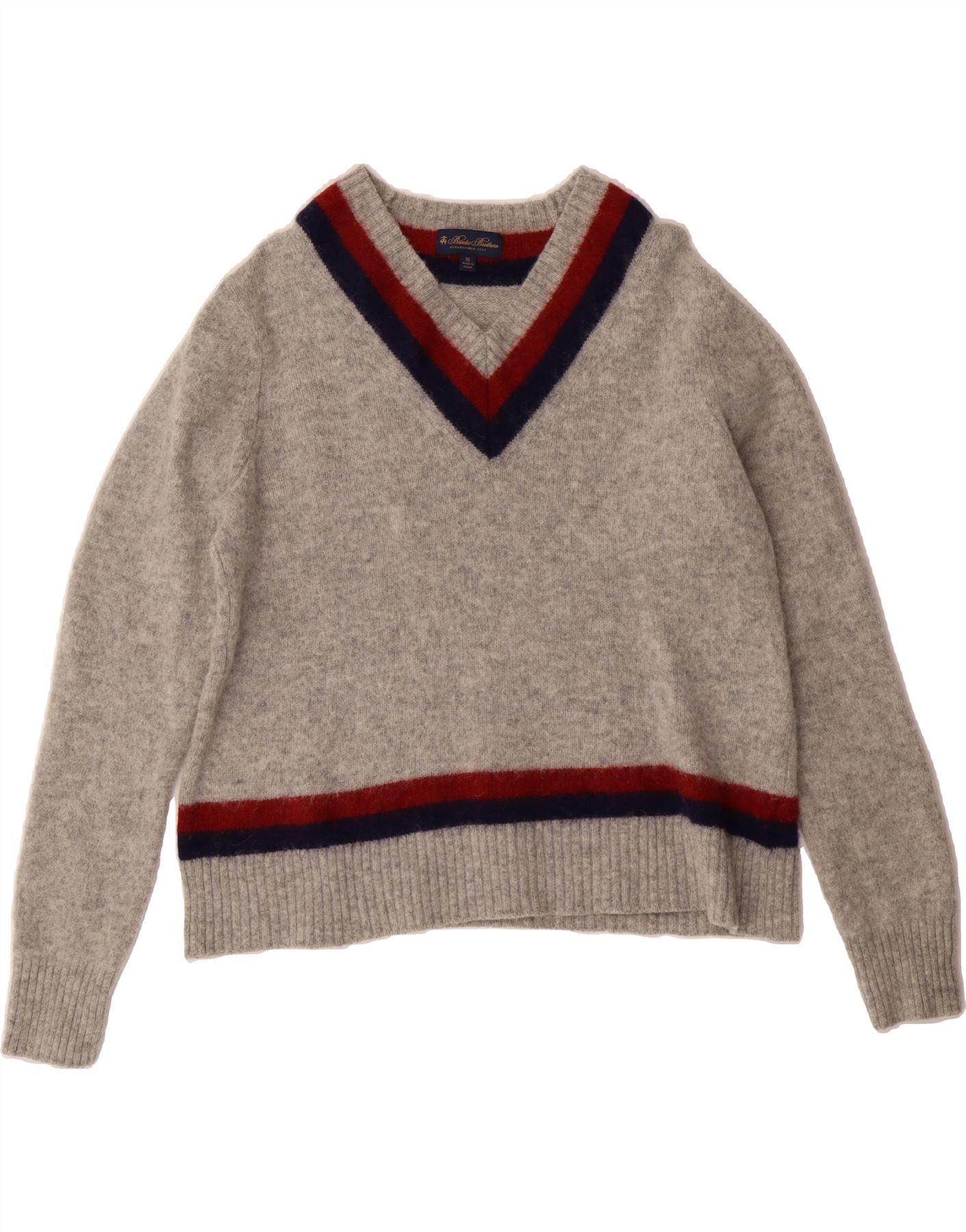 BROOKS BROTHERS Womens V-Neck Jumper Sweater UK 18 XL Grey Wool