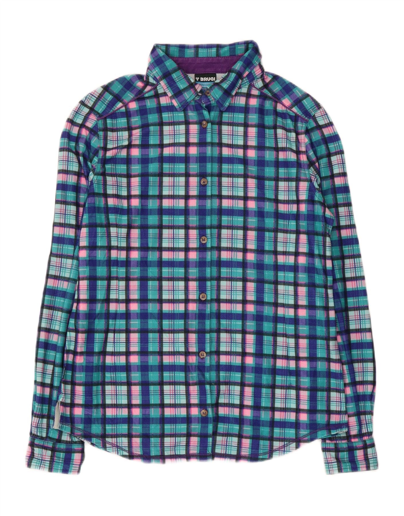 BRUGI Chemise en flanelle pour femme UK 14 Grand carreaux bleus