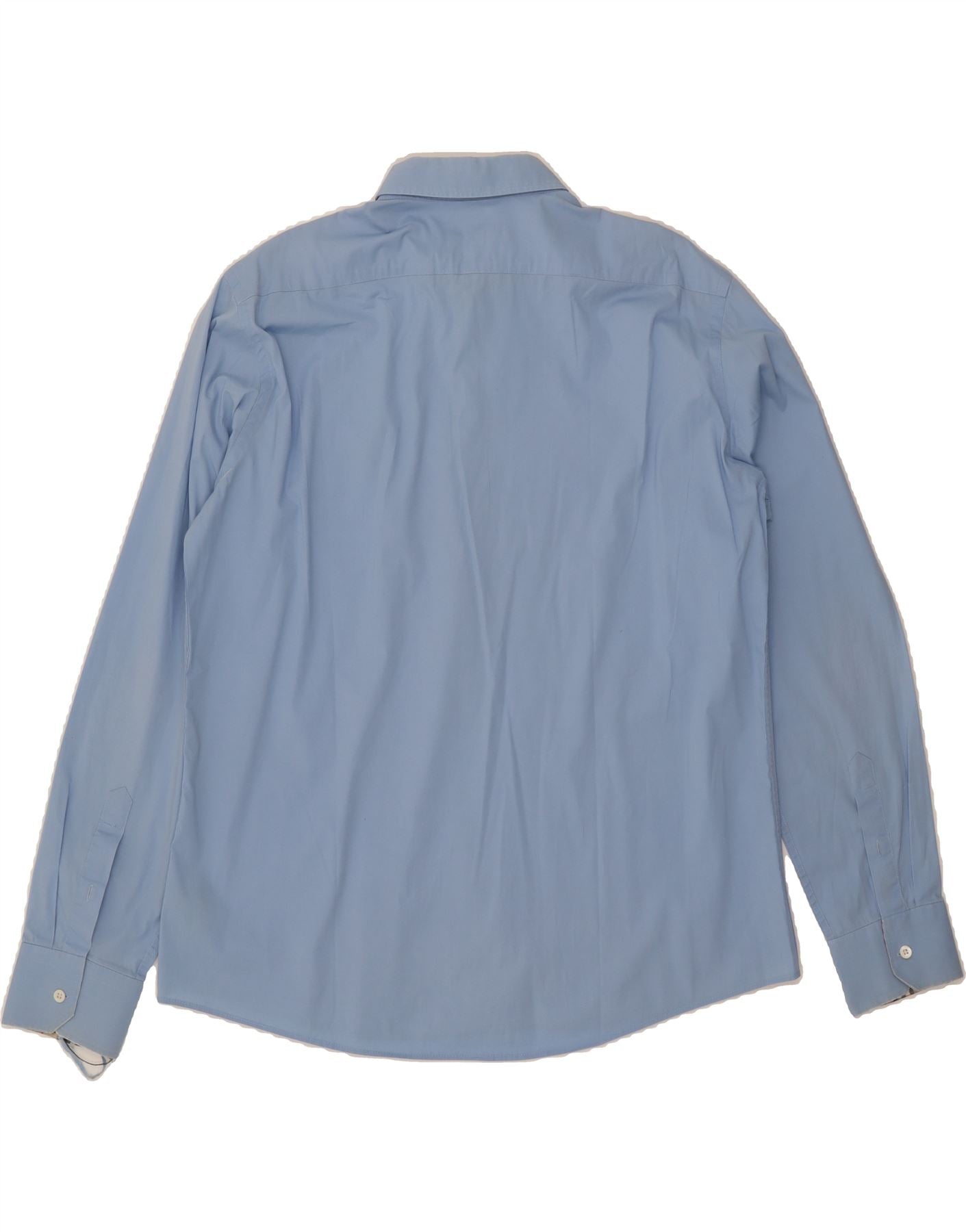 - AI Description: This Burberry shirt is crafted from 96% cotton and 4% elastane for comfort and a slight stretch. The classic, regular fit design features a collared neckline, long sleeves with cuffed detailing, and a button closure. Accented with buttons and subtle logo detailing, this blue woven shirt is suitable for machine washing. New with tags.