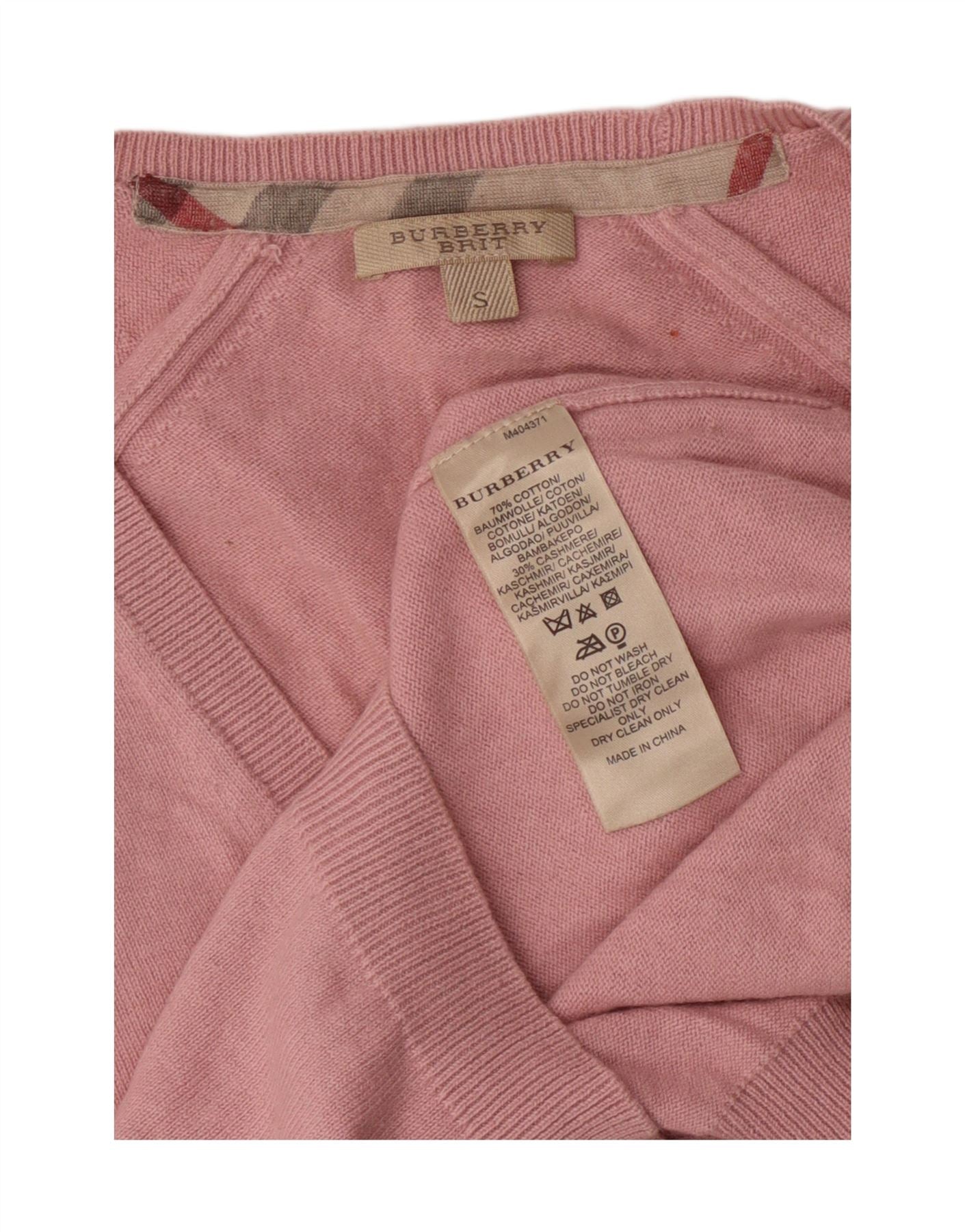 BURBERRY Womens V-Neck Jumper Sweater UK 10 Small Pink Cotton