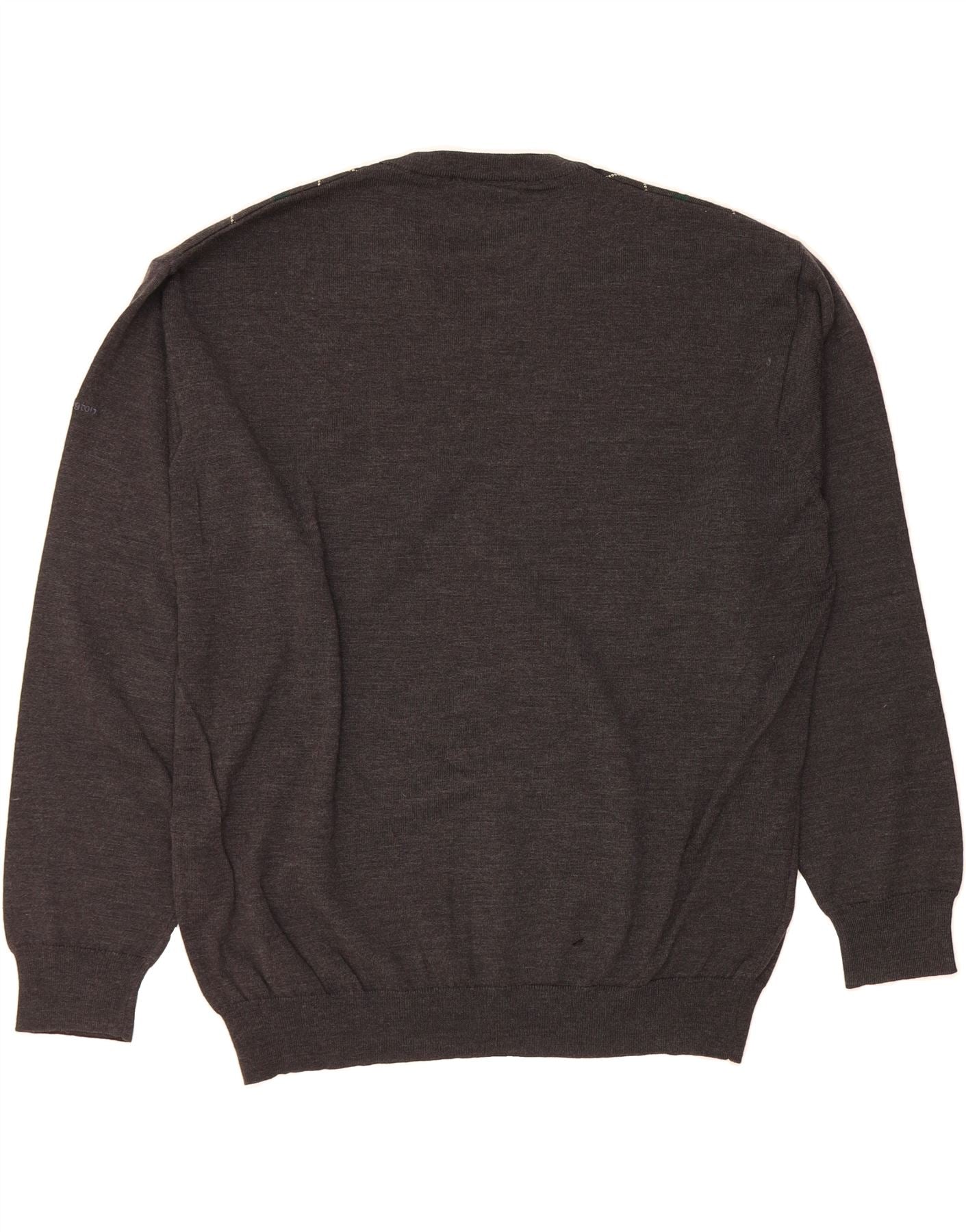 BURLINGTON Mens V-Neck Jumper Sweater IT 54 XL Grey Argyle/Diamond Wool