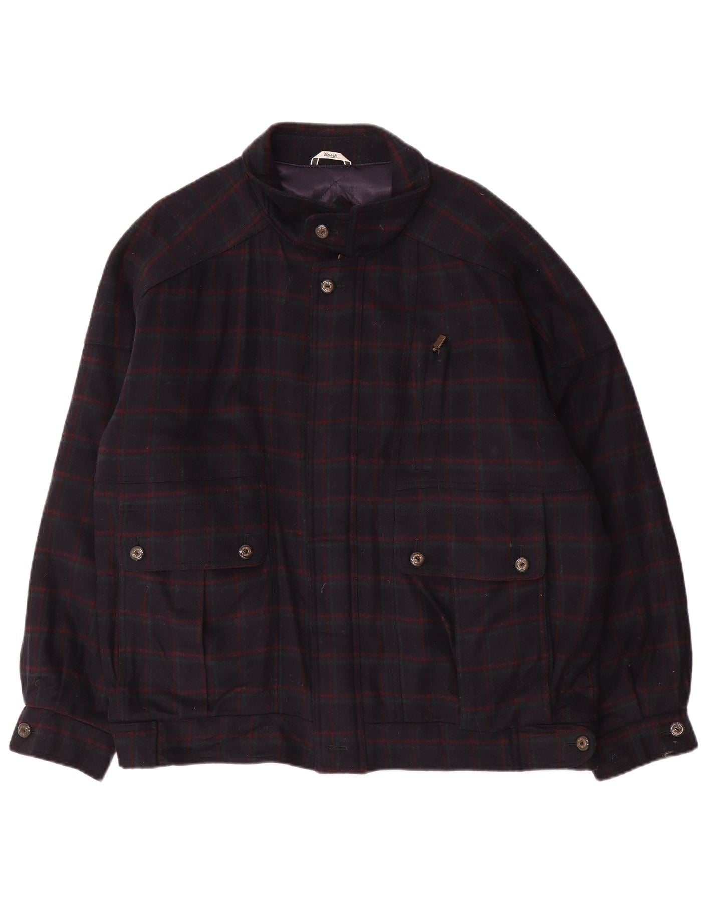 BUSCH Veste Bomber Homme UK 42 XL Bleu Marine à Carreaux Laine