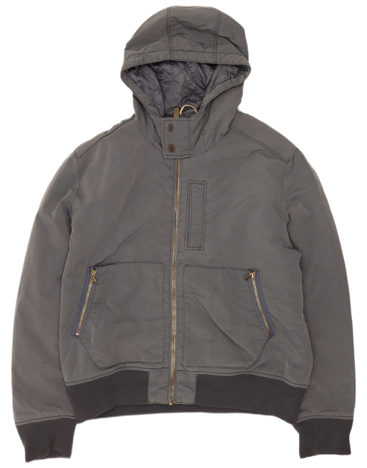 Calvin Klein Jeans Veste bomber à capuche pour homme UK 44 2XL Gris Polyester