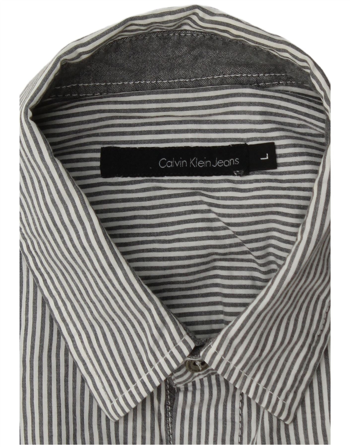 CALVIN KLEIN JEANS Chemise à Manches Courtes Homme Large Gris Rayé