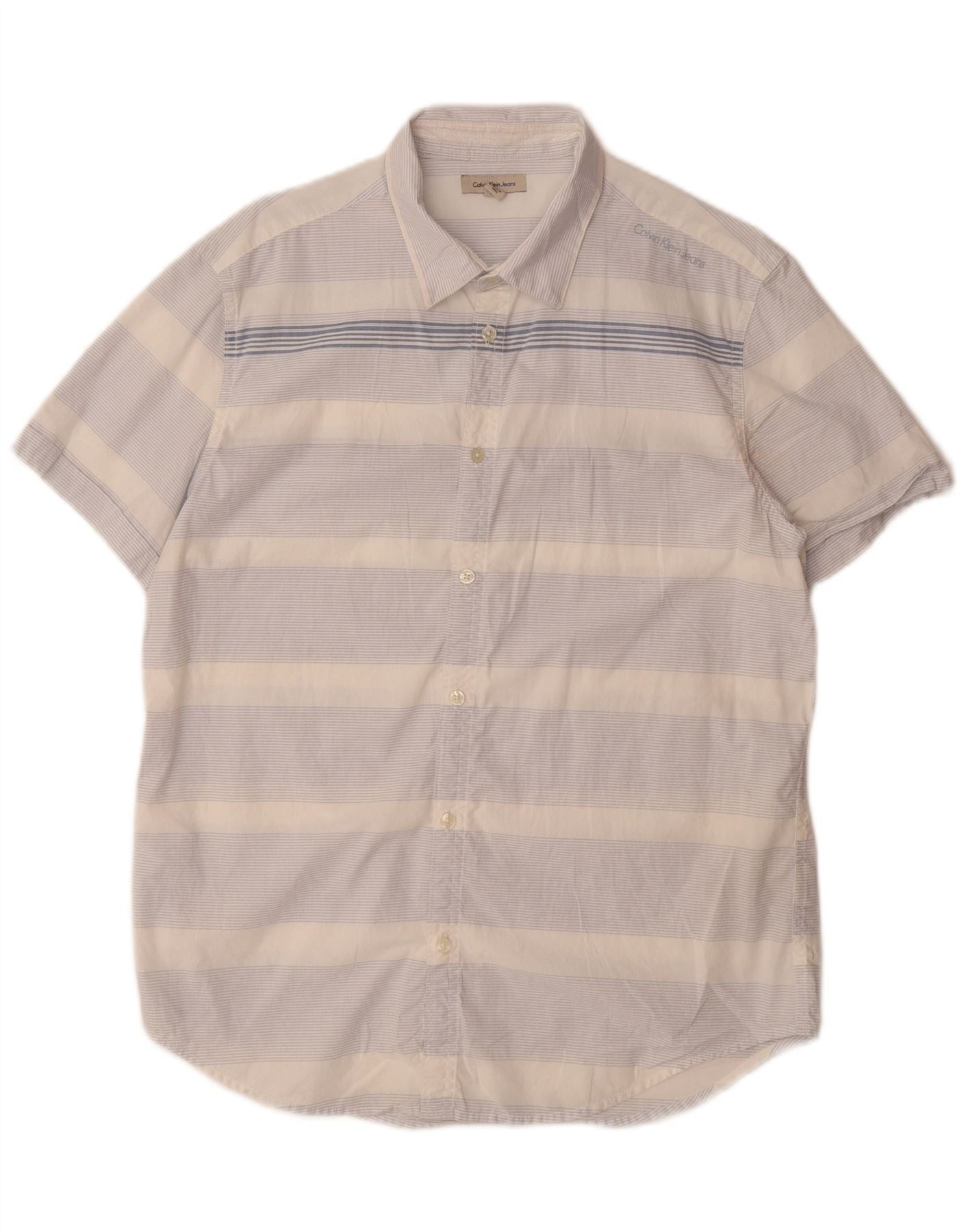 CALVIN KLEIN JEANS Chemise à Manches Courtes Homme Bleu Moyen Coton Rayé