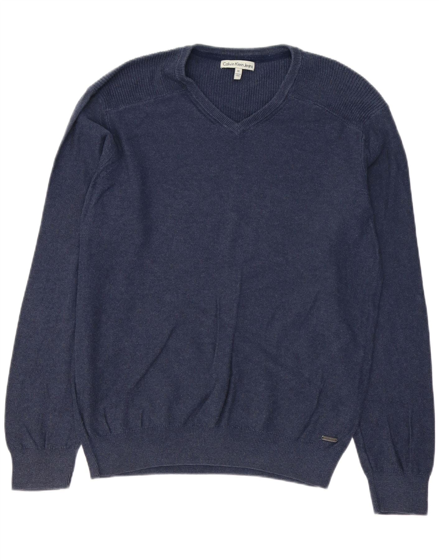 CALVIN KLEIN JEANS Pull Col V Homme Bleu Marine Moyen Coton